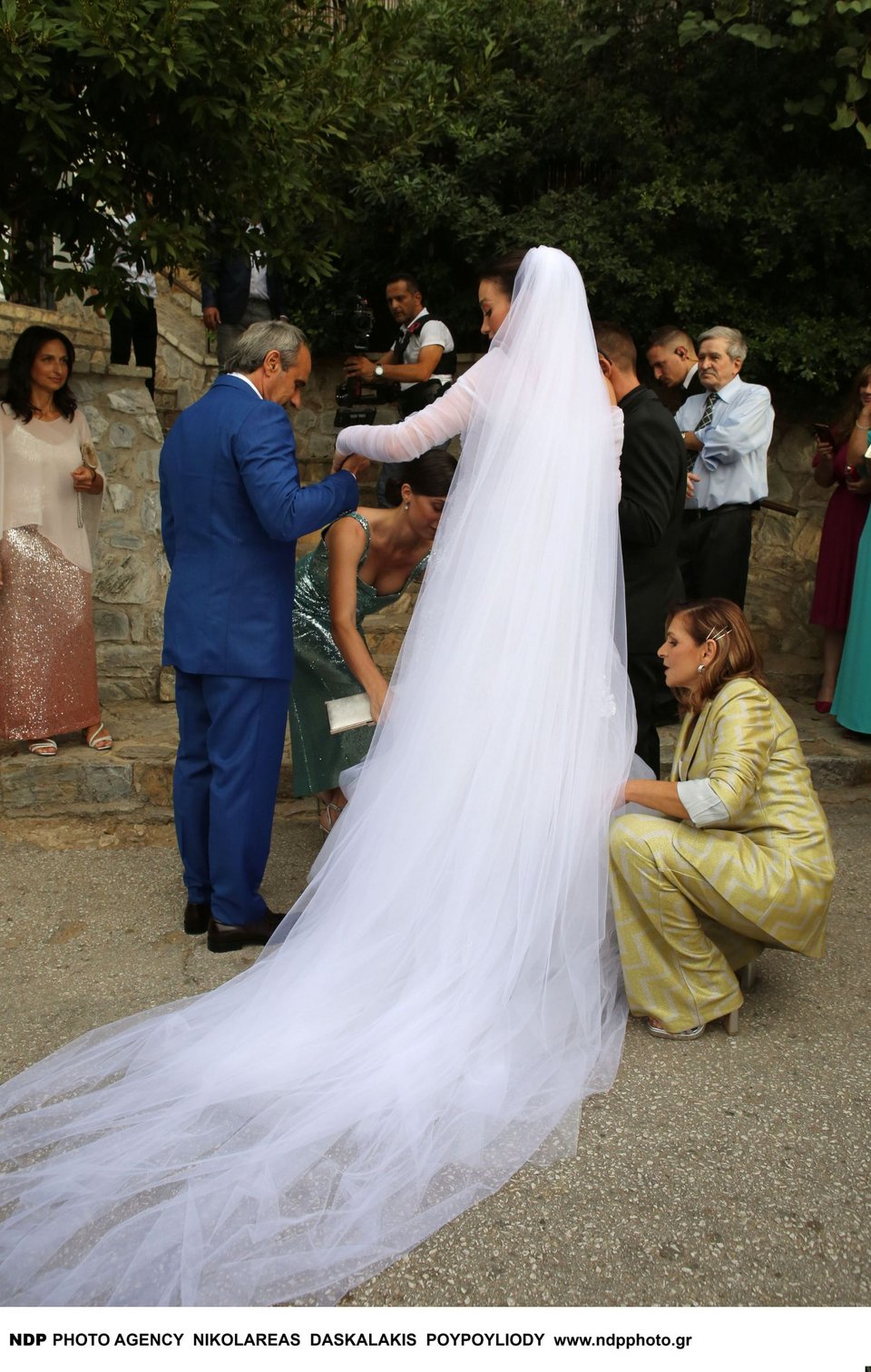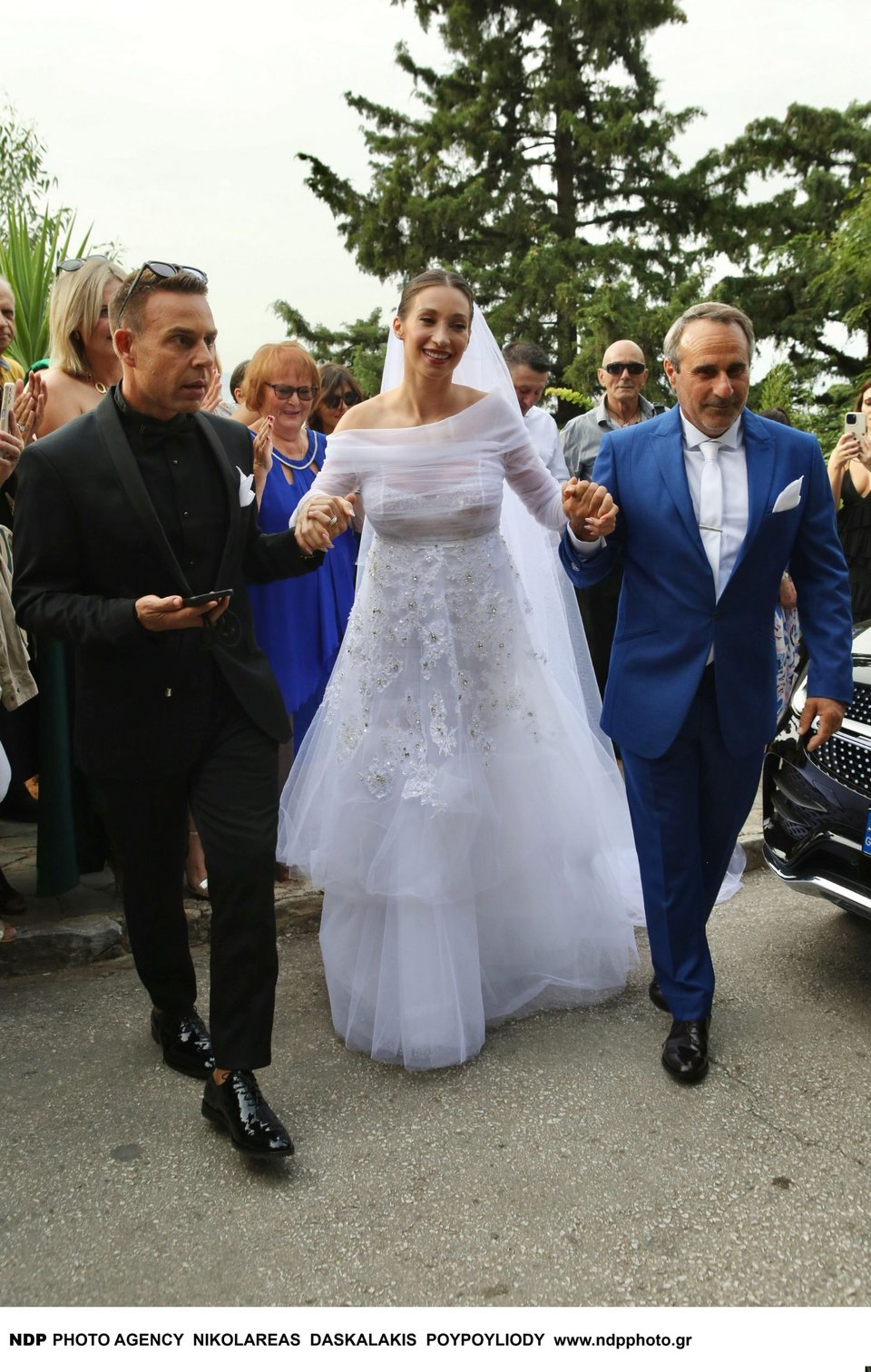 Πρώτος έφθασε φυσικά ο γαμπρός παρέα με τους φίλους του και λίγο αργότερα η εντυπωσιακή νύφη Δήμητρα Βαμβακούση. Το νυφικό της λιτό αλλά και περίπλοκο ταυτόχρονα, με όμορφες και ιδιαίτερες λεπτομέρειες και κεντήματα, η ίδια όμορφη όπως πάντα, την συνόδευσαν οι δικοί της άνθρωποι για να την παραδώσουν στον γαμπρό.