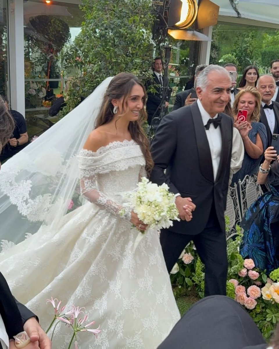 Η κόρη του πρίγκιπα Ρεζά Παχλαβί και της πριγκίπισσας Γιασμίν Παχλαβί φόρεσε ένα αέρινο, στράπλες νυφικό Elie Saab με αποσπώμενα μανίκια, ενώ ο Αμερικανός σύντροφός της επέλεξε ένα μαύρο σμόκιν για τη μεγάλη μέρα.