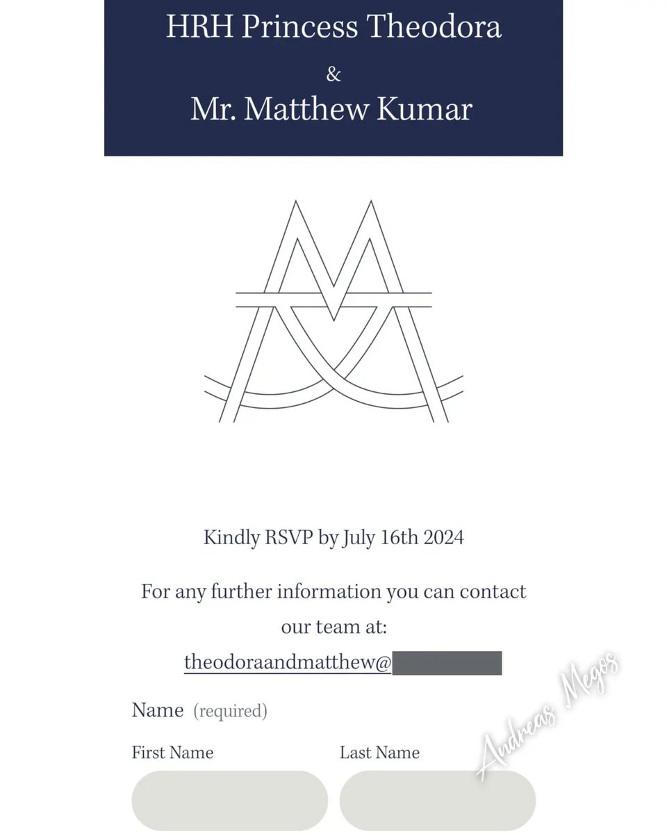 Λίγο μετά την αποστολή των προσκλήσεων σε συγγενείς και στενούς φίλους, όσοι θα παρευρεθούν στον γάμο της Θεοδώρας Γλύξμπουργκ και του Μάθιου Κούμαρ κλήθηκαν να δώσουν λεπτομέρειες για τη συμμετοχή τους σε όλα όσα έχει κανονίσει το ζευγάρι για τους εορτασμούς του γάμου του: Το κοκτέιλ-δείπνο καλωσορίσματος στις 27 Σεπτεμβρίου στο Βυζαντινό και Χριστιανικό Μουσείο, τη γαμήλια τελετή στον Μητροπολιτικό Καθεδρικό Ναό της Αθήνας και τη γαμήλια δεξίωση στις 28 Σεπτεμβρίου στο ξενοδοχείο «One & Only Aesthesis» στην παραλία της Γλυφάδας, και το αποχαιρετιστήριο brunch στις 29 Σεπτεμβρίου, αν θα συνοδεύονται από δεύτερο άτομο κ.ο.κ., ώστε να διασφαλιστεί ότι όλα θα είναι στην εντέλεια μέχρι την τελευταία λεπτομέρεια.