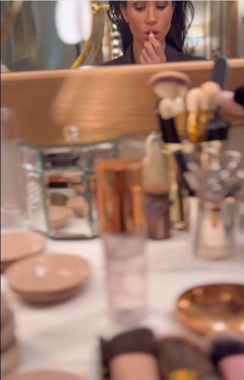 Το βίντεο, στη συνέχεια, δείχνει τη Μέγκαν Μαρκλ να μακιγιάρεται μπροστά στο μπουντουάρ της με ένα πλήθος καλλυντικών και πινέλων μπροστά της, ενώ οι θεατές βλέπουν επίσης πλάνα από τη στιγμή που εκείνη και ο πρίγκιπας Χάρι κρατιούνται χέρι-χέρι καθώς ποζάρουν για φωτογραφίες στη φιλανθρωπική εκδήλωση Project Healthy Minds.