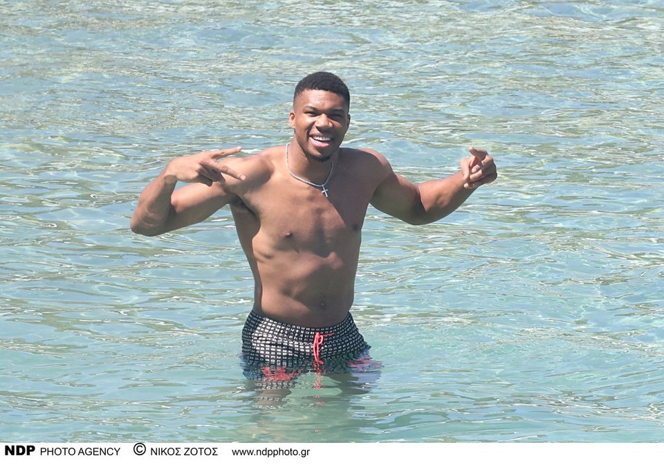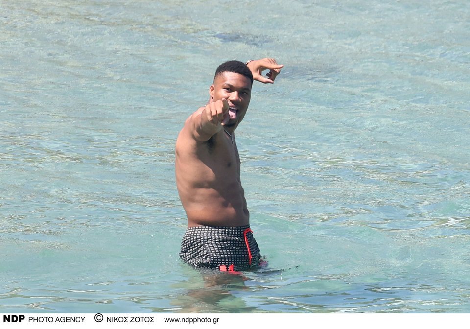 Συγκεκριμένα, ο φωτογραφικός φακός του NDP απαθανάτισε τον σταρ των Μιλγουόκι Μπακς και τα αδέλφια του να κάνουν μπάνιο σε παραλία του νησιού.