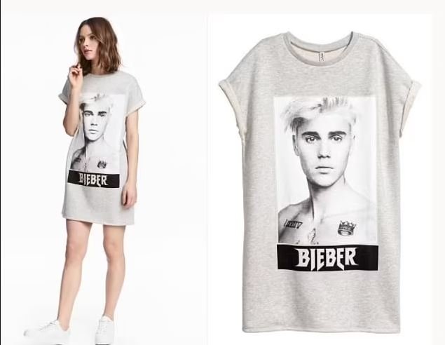 Τα νέα είδη ένδυσης με το πρόσωπο του Τζάστιν Μπίμπερ περιλαμβάνουν, μεταξύ άλλων, ένα φόρεμα με μια ασπρόμαυρη φωτογραφία του και μια υφασμάτινη τσάντα με διάφορες φωτογραφίες του παντού τυπωμένες επάνω της.