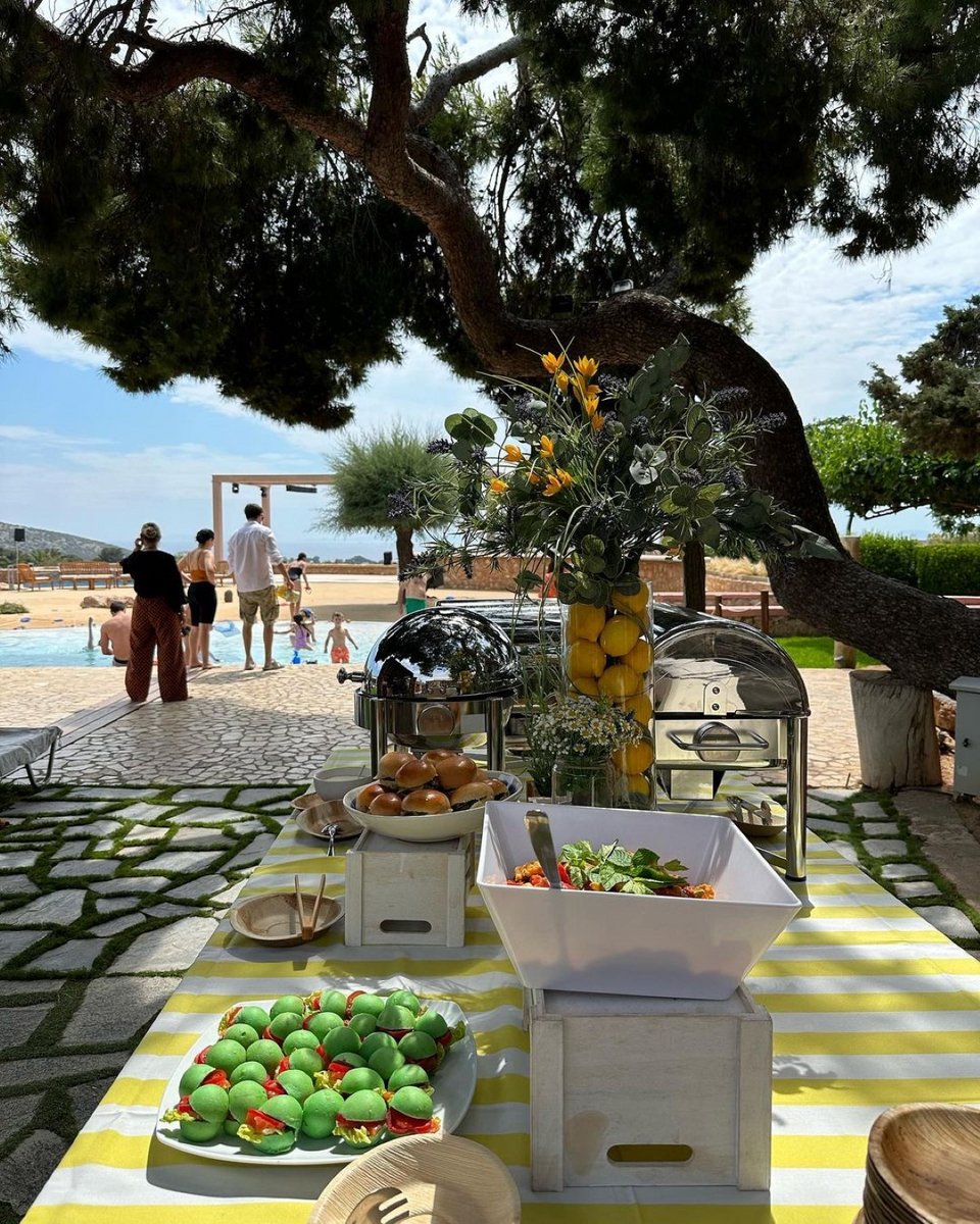 Παράλληλα, στις σχετικές εικόνες καταγράφεται ο πλούσιος και πολύχρωμος μπουφές, αλλά και η εντυπωσιακή τούρτα του μικρού Αλέξανδρου.