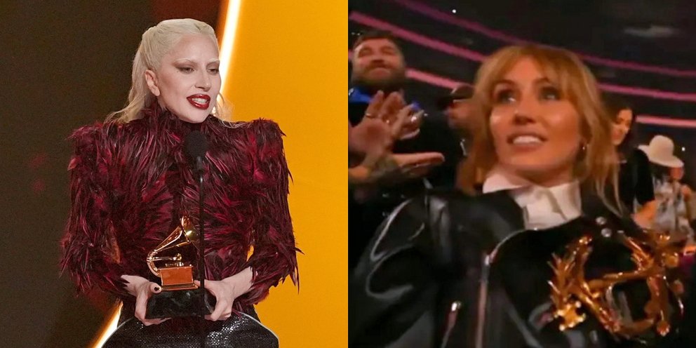 Η Lady Gaga ήταν η μεγάλη νικήτρια στη χθεσινή απονομή των βραβείων Grammy, με την αντίδραση της Μάιλι Σάιρους να προκαλεί αντιδράσεις.