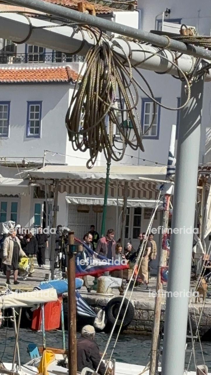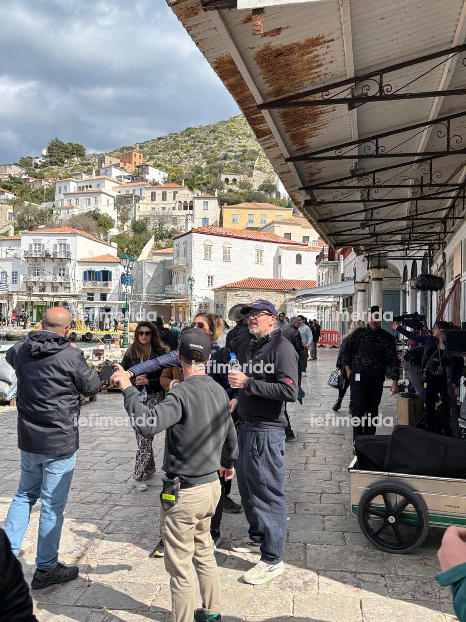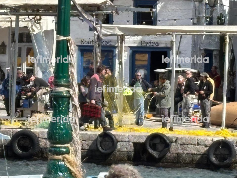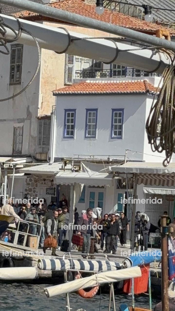Ο Μπραντ Πιτ έφτασε το πρωί στο λιμάνι της Ύδρας. Χαμογελαστός και ευδιάθετος, χαιρέτησε όσους βρίσκονταν γύρω από το σετ και περίμεναν να τον δουν.