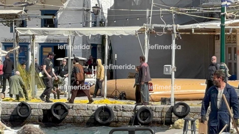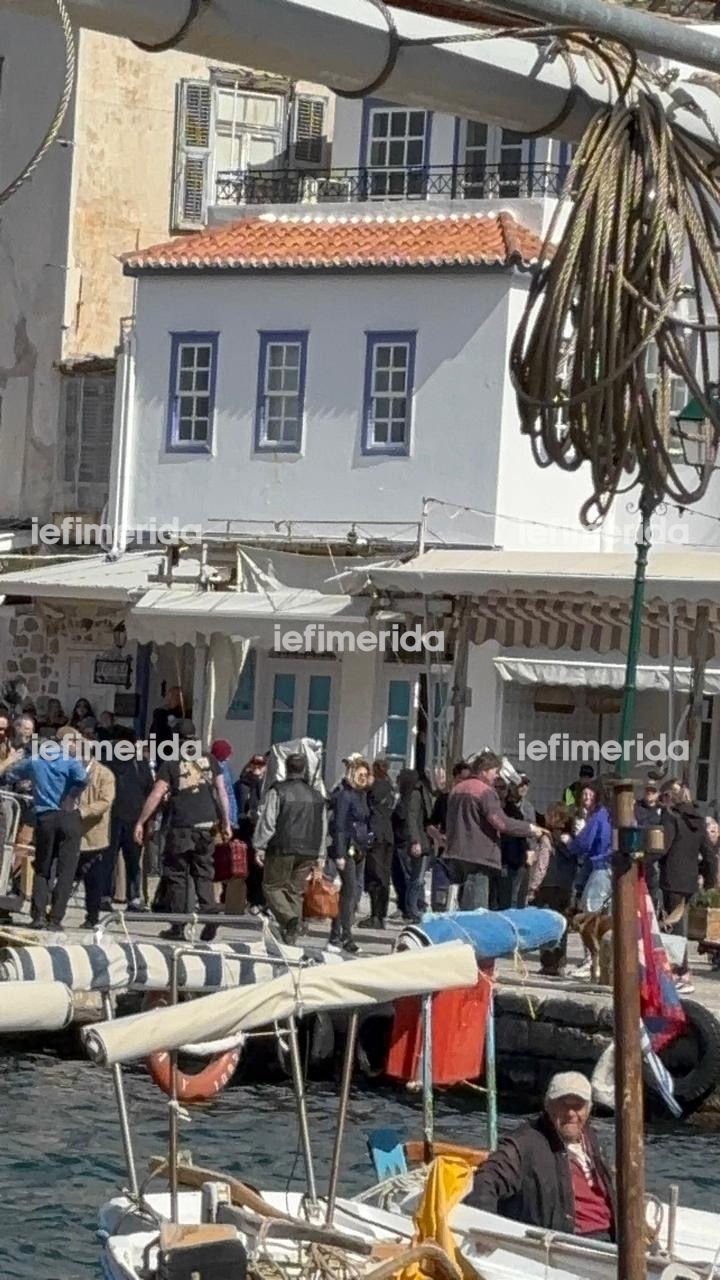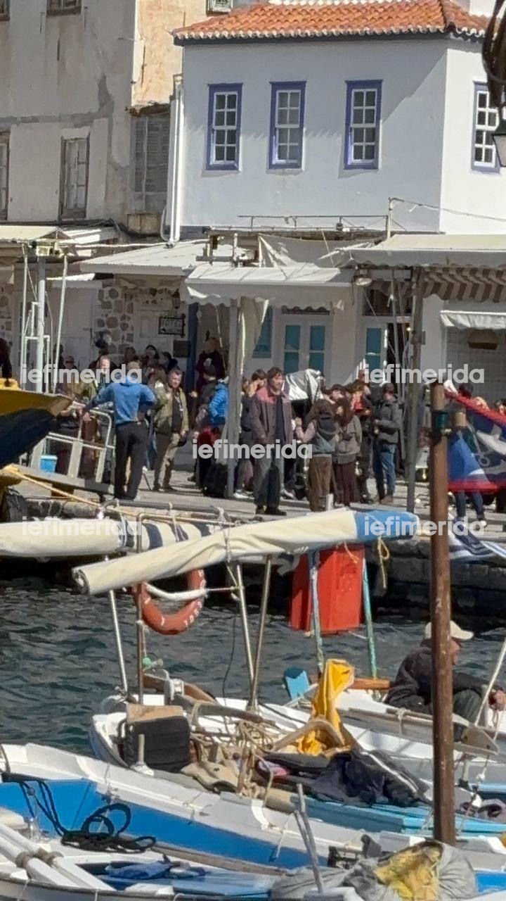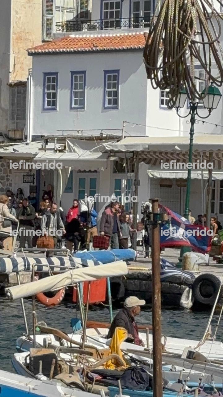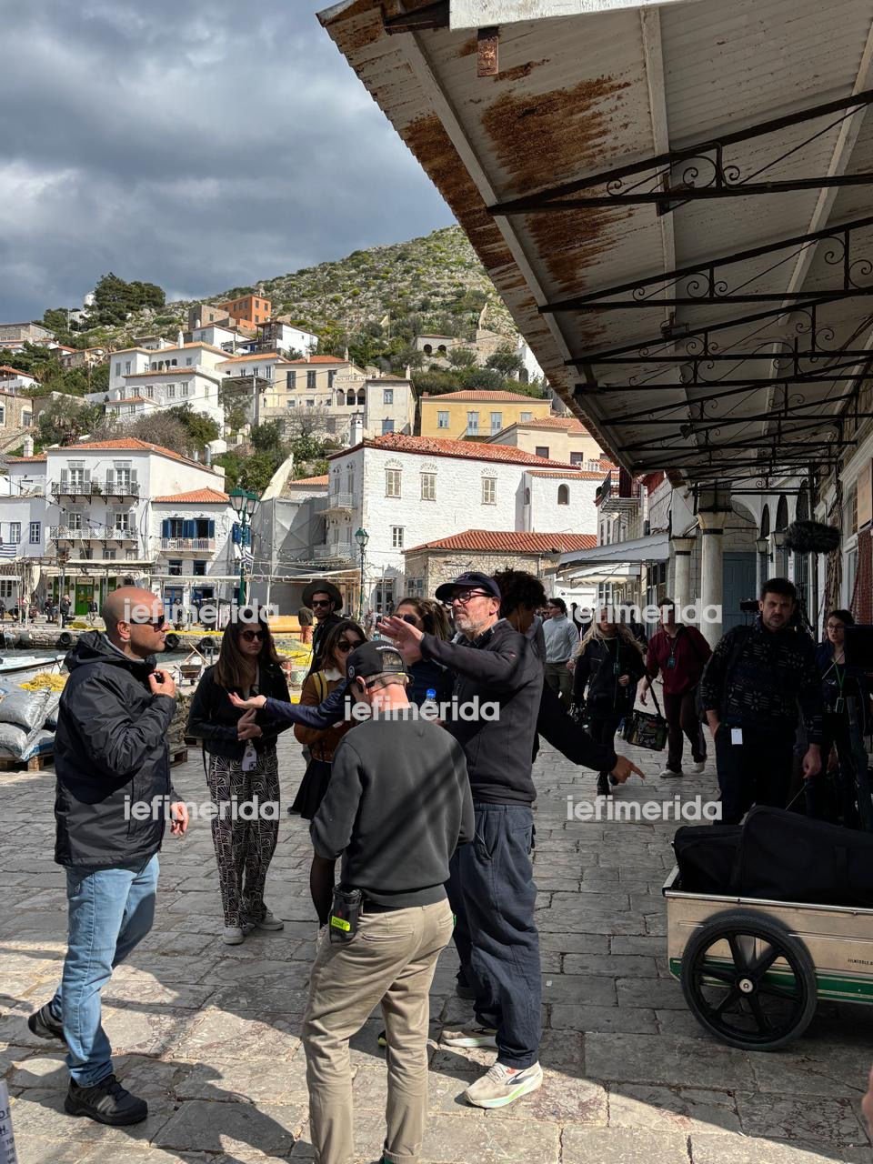 Ο Μπραντ Πιτ έφτασε το πρωί στο λιμάνι της Ύδρας. Χαμογελαστός και ευδιάθετος, χαιρέτησε όσους βρίσκονταν γύρω από το σετ και περίμεναν να τον δουν.
