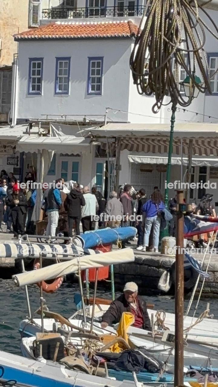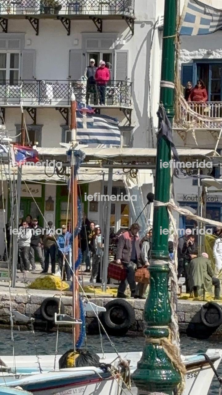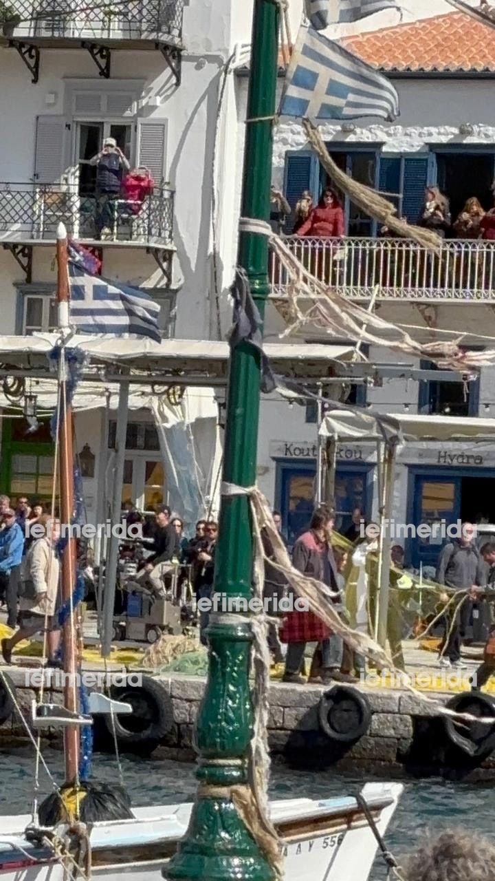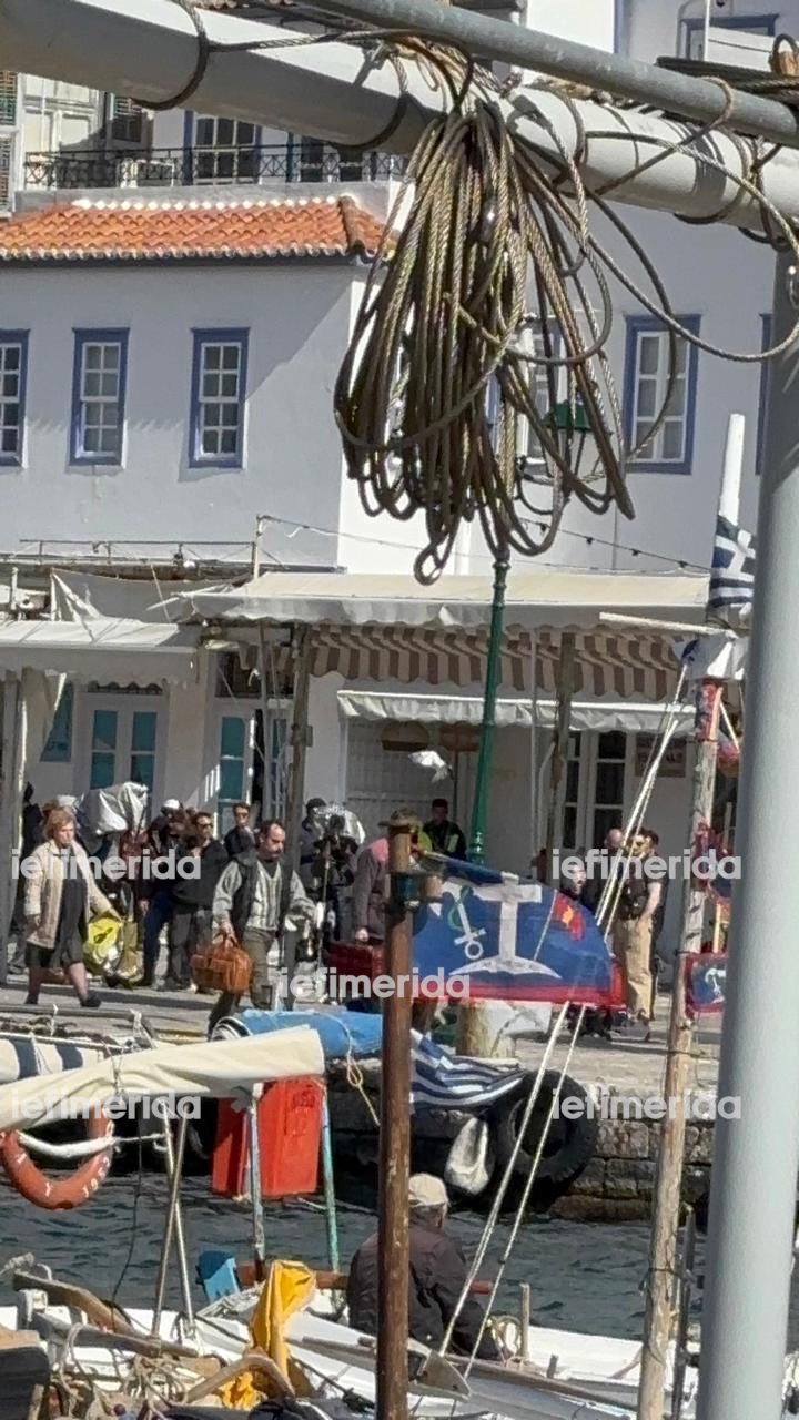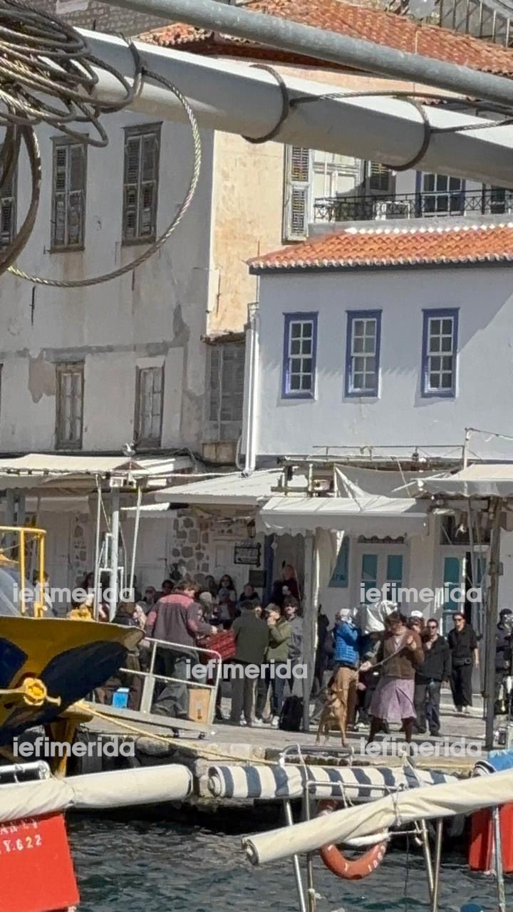 Ο Μπραντ Πιτ έφτασε το πρωί στο λιμάνι της Ύδρας. Χαμογελαστός και ευδιάθετος, χαιρέτησε όσους βρίσκονταν γύρω από το σετ και περίμεναν να τον δουν.