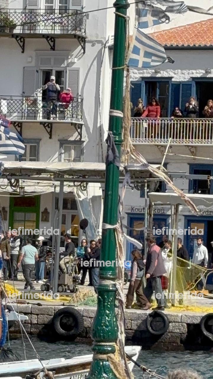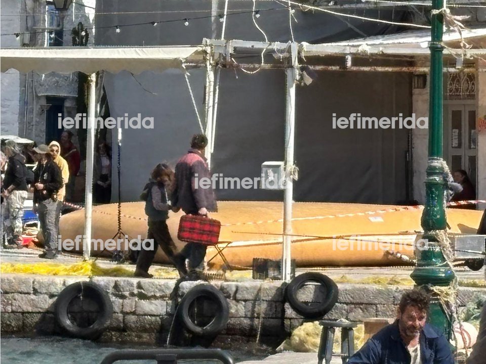 Από νωρίς, συνεργεία δημιούργησαν το σκηνικό και τράβηξαν τα απαραίτητα πλάνα με το vintage δελφίνι, το οποίο απέπλευσε στα ανοιχτά και μετά επέστρεψε.