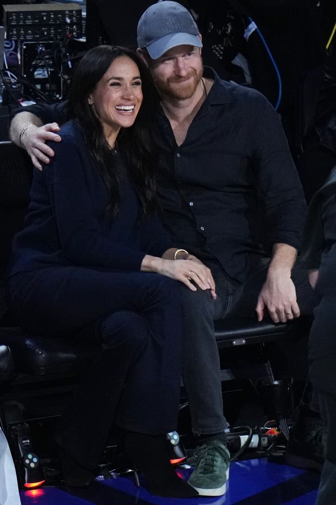 Το πρώην βασιλικό ζεύγος της Βρετανίας κάθισε δίπλα στην Κουίν Λατίφα (Queen Latifah), η οποία συνοδευόταν από τη σύντροφό της, Έμπονι Νίκολς, και τον 6χρονο γιο τους, Ρέμπελ. Η διάσημη ράπερ και η Μέγκαν εθεάθησαν να συνομιλούν, ενώ αρκετές φορές η δούκισσα βιντεοσκοπούσε με το κινητό τη δράση στο παρκέ, καθώς ο Λεμπρόν Τζέιμς (LeBron James) και ο Λούκα Ντόντσιτς (Luka Doncic) «φόρτωναν» τα αντίπαλα καλάθια.