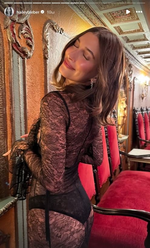 Η ιδρύτρια της Rhode και δισεκατομμυριούχος πλέον, επέλεξε ένα φόρεμα με boudoir αναφορές και συγκεκριμένα διέθετε εφαρμοστό μπούστο από διάφανη δαντέλα με φλοράλ μοτίβα σε όλη την επιφάνειά του. Η αέρινη φούστα πρόσθετε διάσταση στο σύνολο, ενώ τα δραματικά μακριά μανίκια με τα επιμήκη βολάν χάριζα μια έντονη βικτωριανή λεπτομέρεια.