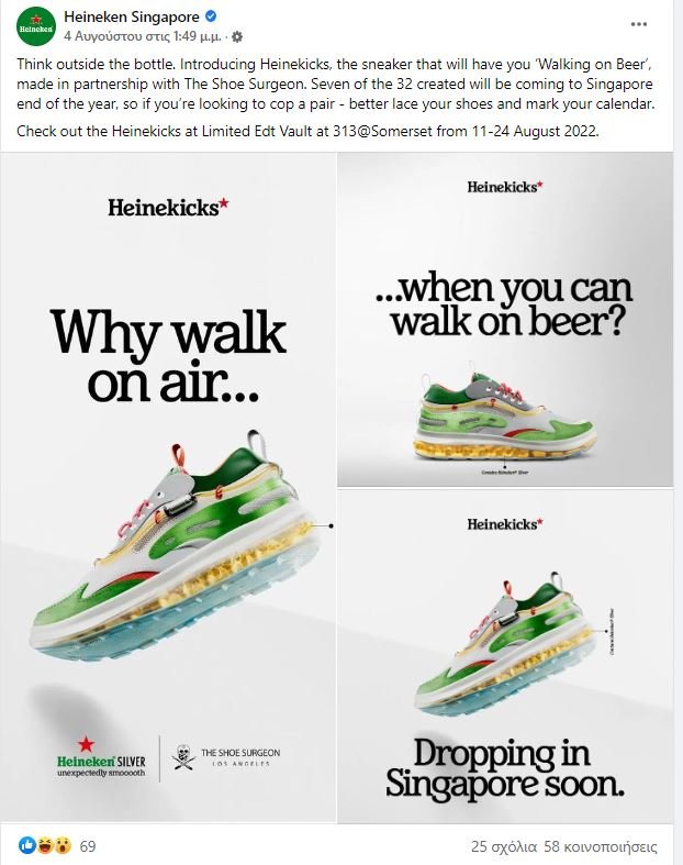 Τα «Heinekicks» όπως ονομάζονται τα παπούτσια, είναι περιορισμένης έκδοσης και περιλαμβάνουν ένα ανοιχτήρι μπουκαλιών κρυμμένο στη γλώσσα.