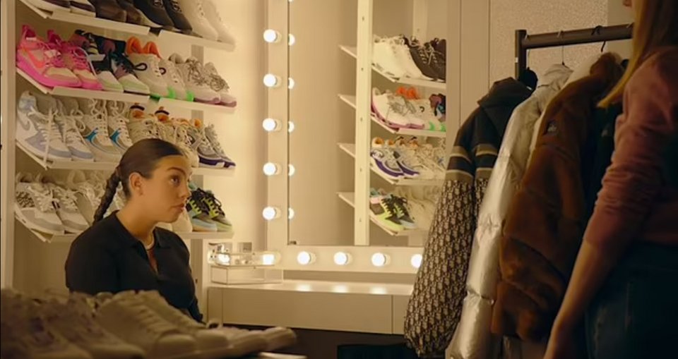 Τα εντυπωσιακά ρούχα της Χεορχίνα είναι ταξινομημένα σε διαφορετικά ράφια, ενώ τα παπούτσια της είναι χωρισμένα σε παντόφλες, αθλητικά, τακούνια και μπότες.