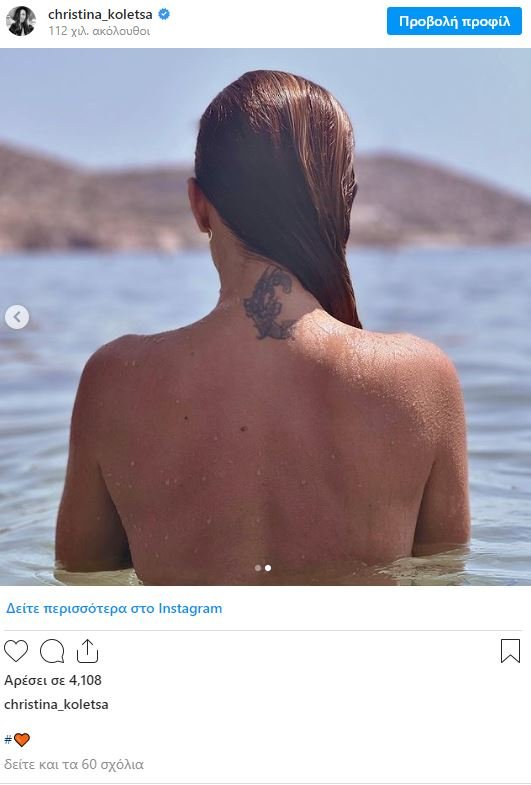 Η τραγουδίστρια, φαίνεται πως απολαμβάνει ακόμα τις διακοπές της και φρόντισε να ξεσηκώσει εμάς που επιστρέψαμε, ανεβάζοντας δύο φωτογραφίες στον προσωπικό της λογαριασμό στο Instagram, όπου κολυμπά τόπλες και μας δείχνει το τατουάζ της.