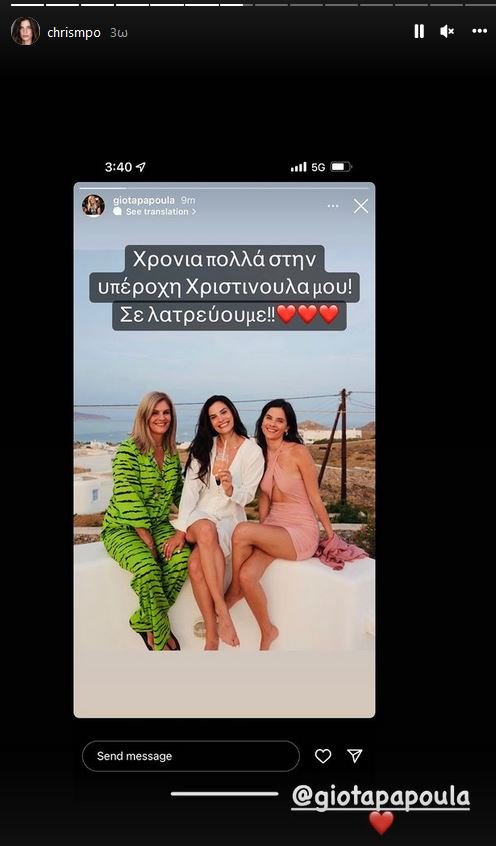 Η μητέρα της ανήρτησε μία φωτογραφία όπου ποζάρει εκείνη και οι δύο της κόρες, Χριστίνα και Ελίνα, γράφοντας: «Χρόνια πολλά στην υπέροχη Χριστινούλα μου. Σε λατρεύουμε».