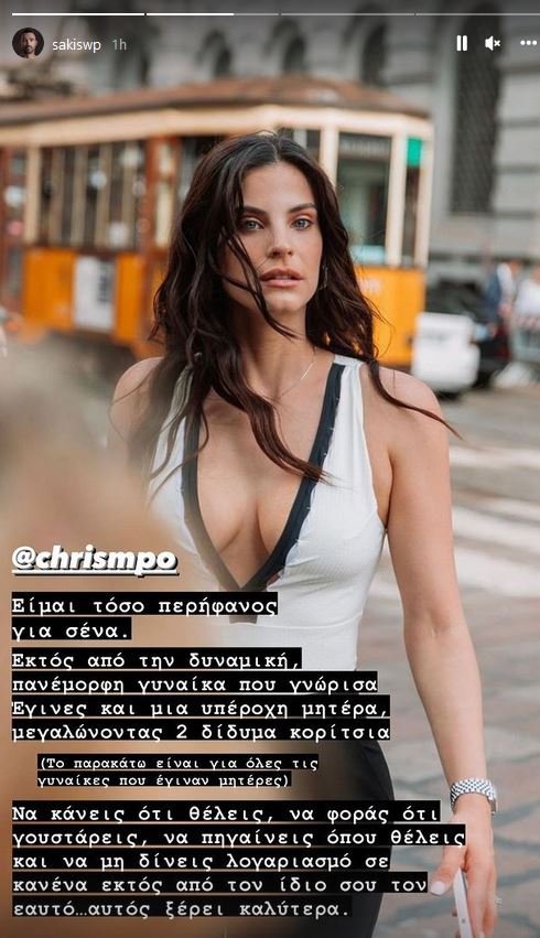 Έτσι, αναδημοσίευσε μία από τις φωτογραφίες της σε μορφή Instastory και τη συνόδευσε γράφοντας: «Είμαι τόσο περήφανος για εσένα. Εκτός από τη δυναμική, πανέμορφη γυναίκα που γνώρισα, έγινες και μία υπέροχη μητέρα μεγαλώνοντας 2 δίδυμα κορίτσια», προσθέτοντας στη συνέχεια: «Το παρακάτω είναι για όλες τις γυναίκες που έγιναν μητέρες. Να κάνεις ό,τι θέλεις, να φοράς ό,τι γουστάρεις, να πηγαίνεις όπου θέλεις και να μη δίνεις λογαριασμό σε κανέναν εκτός από τον ίδιο σου τον εαυτό. Αυτός ξέρει καλύτερα».