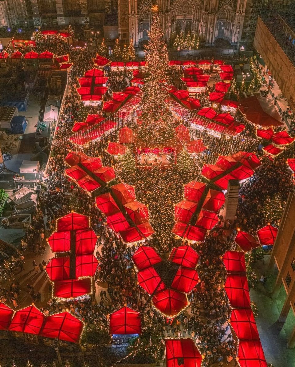 Φυσικά, στην Γερμανία θα συναντήσει κανείς πάνω από 100 τέτοιες αγορές σε πολλές πόλεις. Ωστόσο, υπάρχει μία που ξεχωρίζει: Η χριστουγεννιάτικη αγορά στον Καθεδρικό Ναό της Κολονίας και βρίσκεται στο κέντρο της πόλης, στο προαύλιο του συγκλονιστικού γοτθικού καθεδρικού ναού.