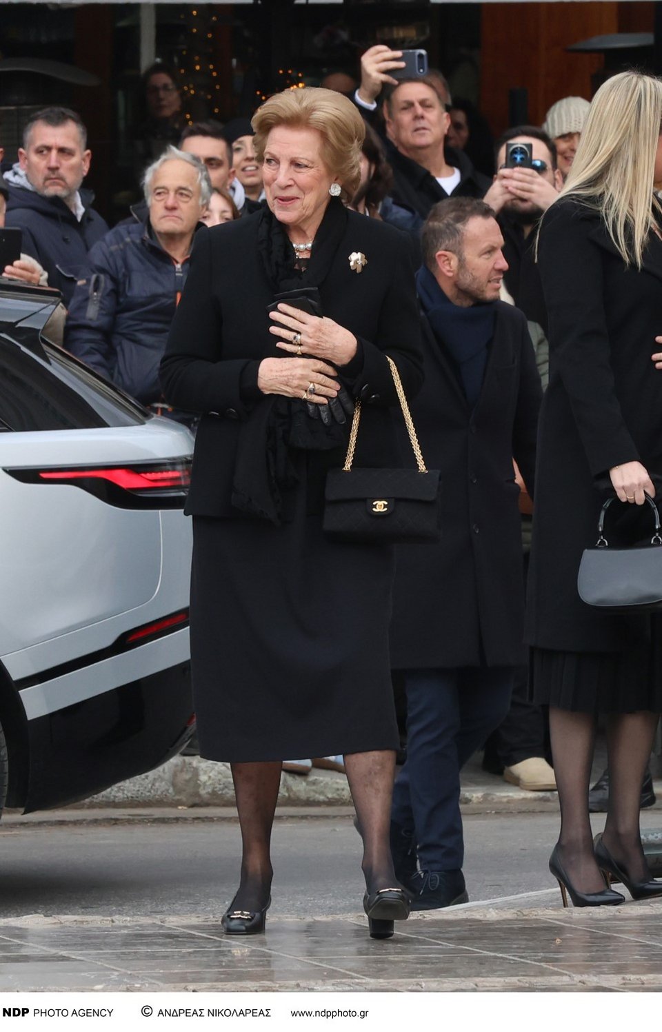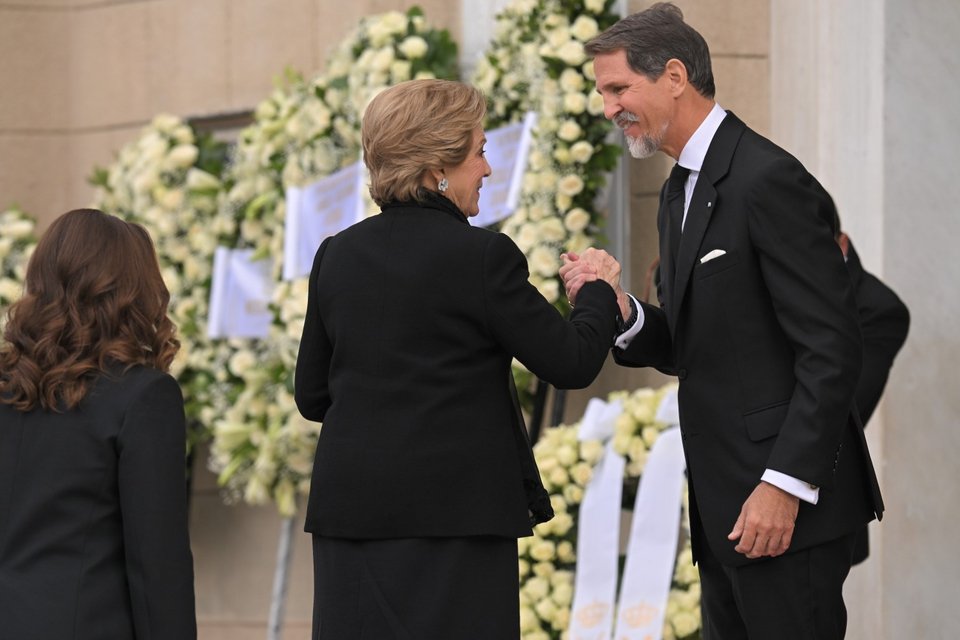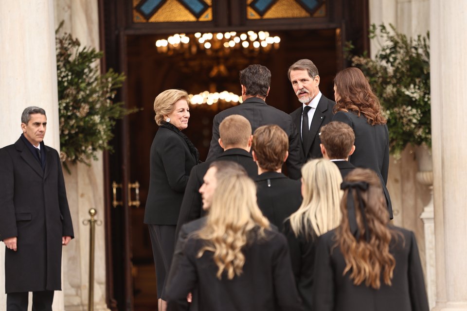 Η σύζυγος του τέως βασιλιά Κωνσταντίνου, Άννα Μαρία, έφτασε από τους τελευταίους, συνοδευόμενη από τις κόρες της, Αλεξία και Θεοδώρα, τους γαμπρούς της, Κάρλος Μοράλες και Μάθιου Κουμάρ, αλλά και τις νύφες της, Νίνα Φλορ και Χρυσή Βαρδινογιάννη.