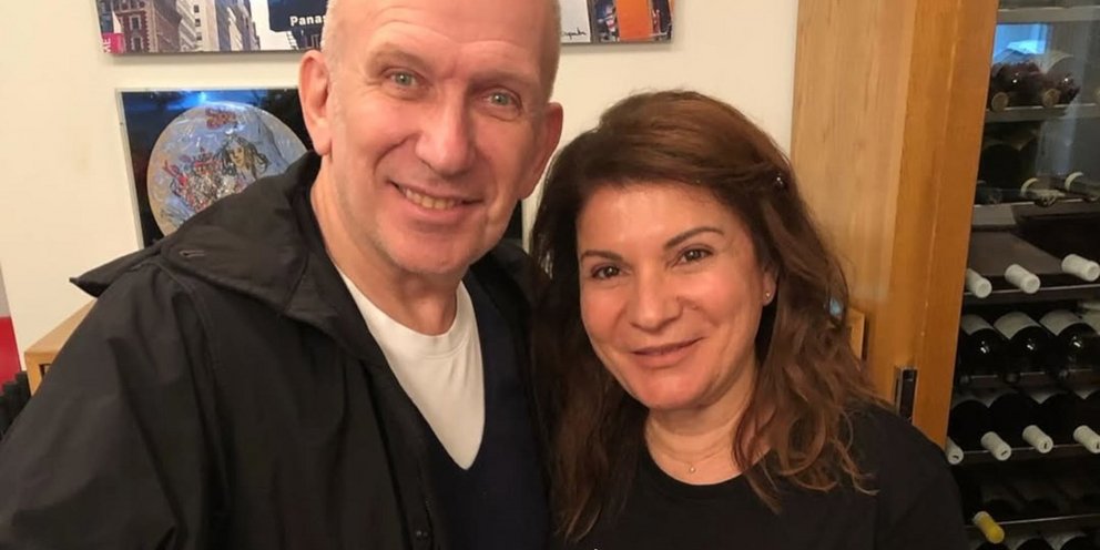 «Εδώ με τον αγαπημένο μου Jean Paul @jeanpaulgaultier φορώντας τον στην συλλεκτική μπλούζα JPGaultier. Βλέπω το αληθινό του βλέμμα και χαίρεται η ψυχή μου, πάντα είναι με το χαμόγελο και τον ζεστό του λόγο. Ο πιο ταλαντούχος, γλυκός, ζεστός, προσγειωμένος, δοτικός άνθρωπος του κόσμου και λίγα λέω. Ένας αληθινός αστέρας. Απλά τον λατρεύω και χαίρομαι που αγαπάει τόσο πολύ την Ελλάδα και την ελληνική κουζίνα. 20 χρόνια που τον γνωρίζω τρελαίνεται για τον ροφό φρικασέ, το χταπόδι με κοφτό μακαρονάκι, τα ρεβύθια, τα ντολμαδάκια! Τρώει, λαχταράει και απολαμβάνει το ελληνικό φαγητό σαν παραδοσιακός Έλληνας».