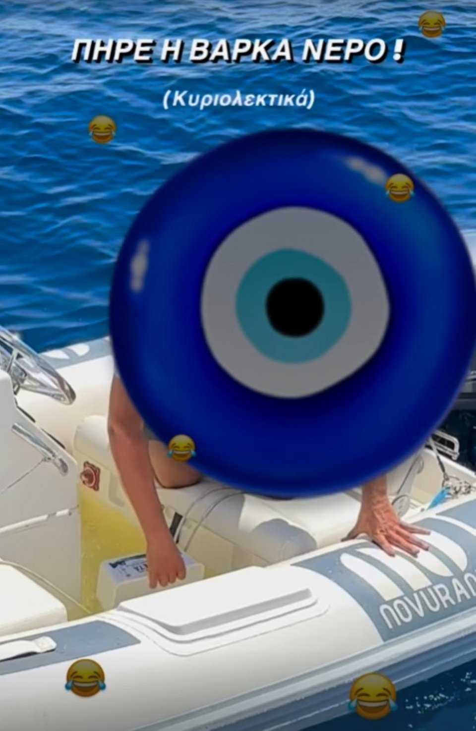 Στο εν λόγω story, ο σύντροφος του μοντέλου καταγράφεται να αδειάζει τη βάρκα τους που έβαλε νερά χρησιμοποιώντας έναν «κουβά», με τη Δήμητρα Αλεξανδράκη να αντιμετωπίζει με χιούμορ το συμβάν και να ακούγεται να γελάει.