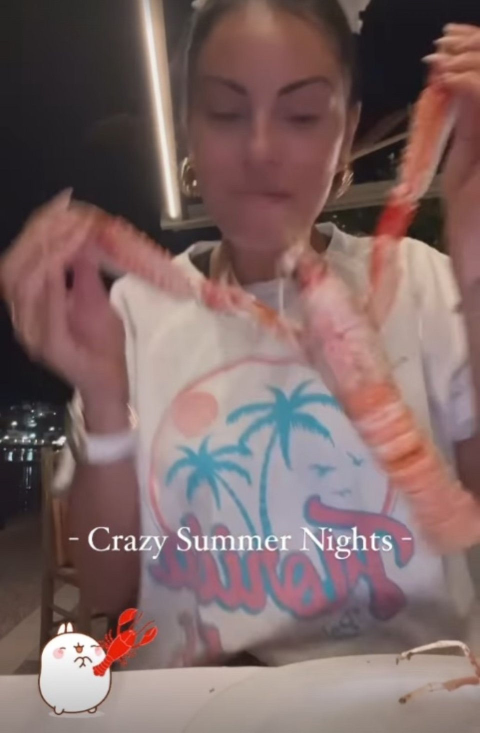 Το γνωστό μοντέλο ευχαριστιέται τις μέρες του καλοκαιριού απολαμβάνοντας τον ήλιο, τη θάλασσα, αλλά και καλό φαγητό, ενώ η ίδια και ο σύντροφός της έχουν παρέα και τα σκυλάκια τους.