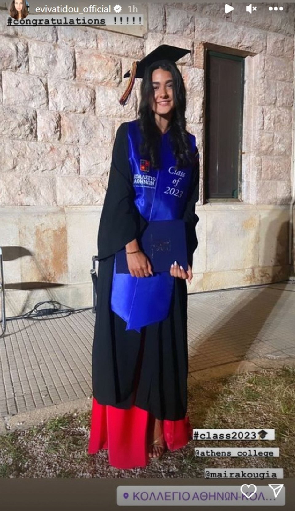 Η Μάιρα Κούγια, ένα εντυπωσιακό 18χρονο κορίτσι, πόζαρε χαμογελαστή με την τήβεννο ενώ η περήφανη μητέρα της Εύη Βατίδου πόσταρε τις σχετικές φωτογραφίες στο Instagram.