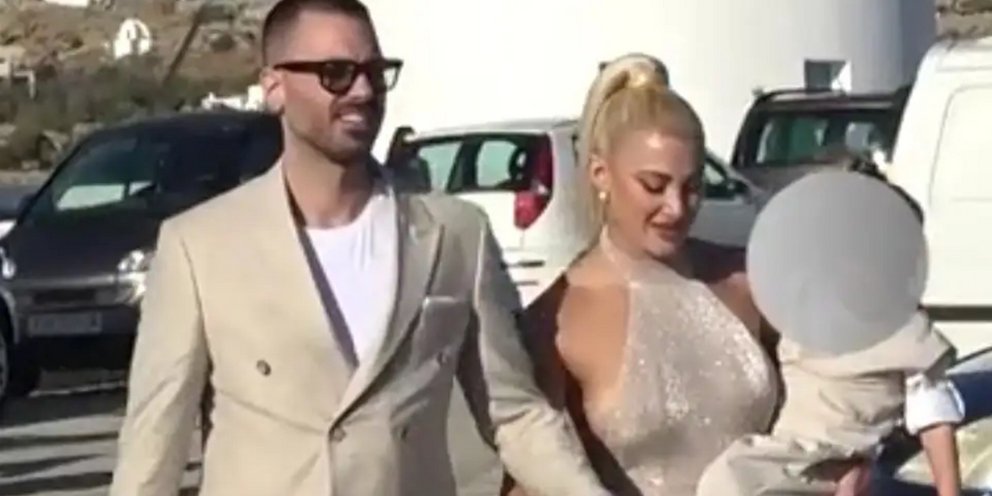 Όπως φαίνεται στο βίντεο του Mykonos Live TV, η influencer και επιχειρηματίας έφτασε στο εκκλησάκι του Αγίου Χαραλάμπους έχοντας στην αγκαλιά της τον γιο της Πάρη, ενώ με το δεξί της χέρι κρατούσε το χέρι του νέου συντρόφου της.