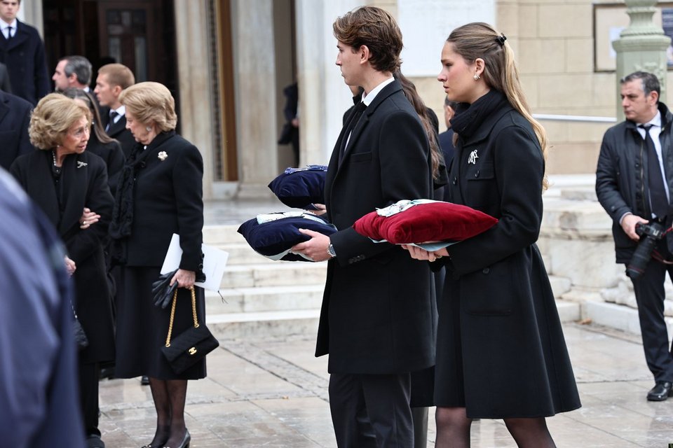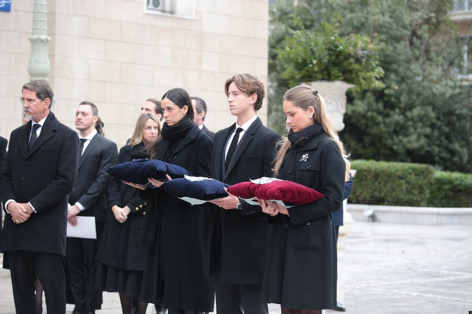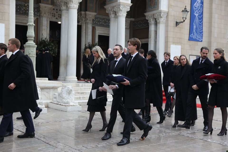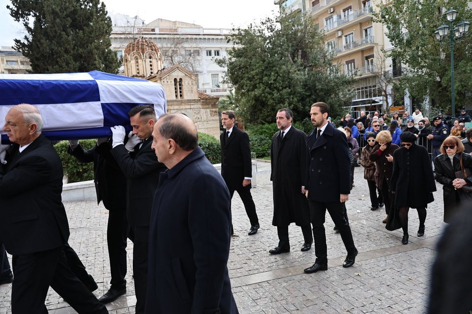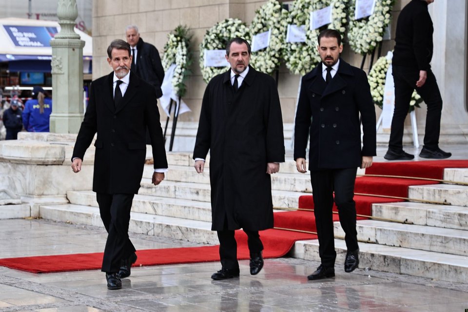 Οι τρεις γιοι του τέως βασιλιά Κωνσταντίνου συνόδευσαν τη σορό της θείας τους Ειρήνης από το παρεκκλήσι στη Μητρόπολη: