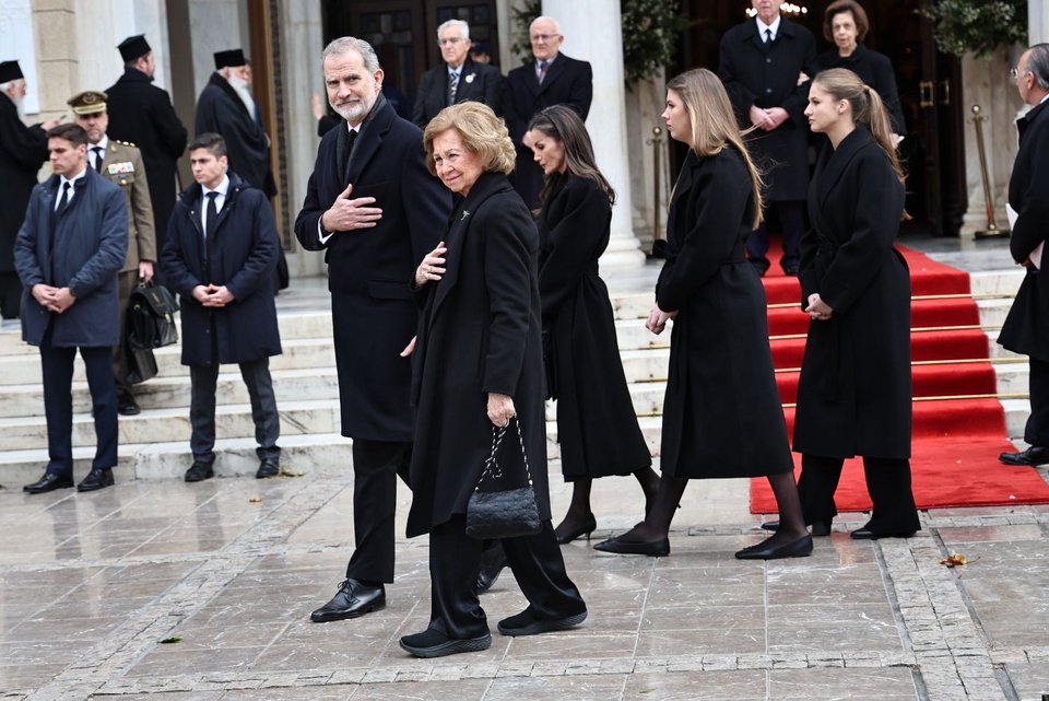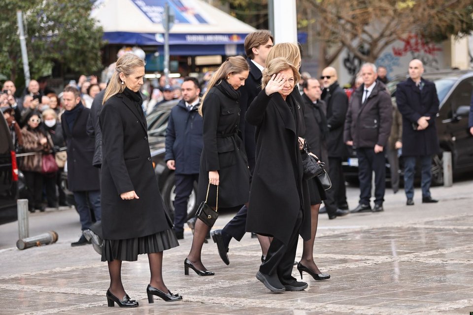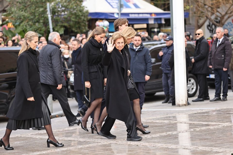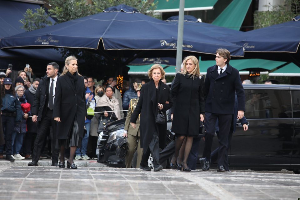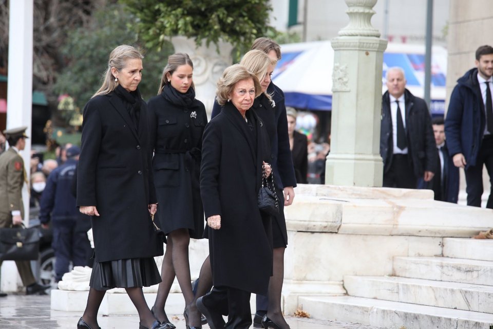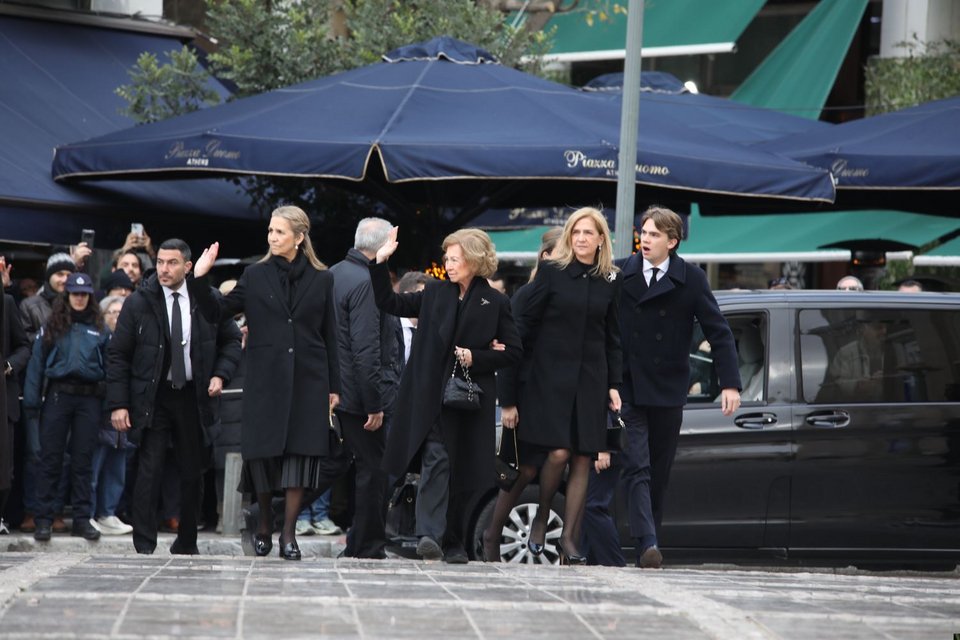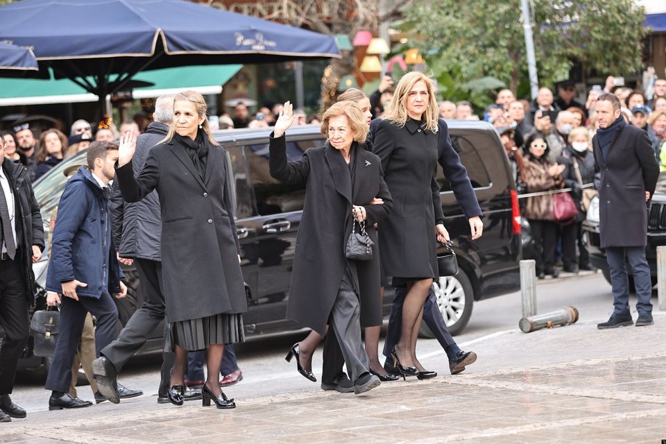 Συγκινημένη έφτασε η αδελφή της πριγκίπισσας Ειρήνης, βασίλισσα Σοφία της Ισπανίας, με τις δύο της κόρες, ινφάντα Κριστίνα και ινφάντα Ελένα, αλλά και τα εγγόνια της.