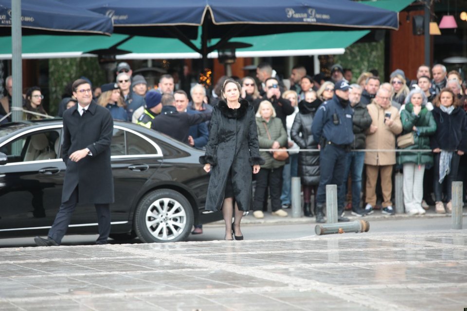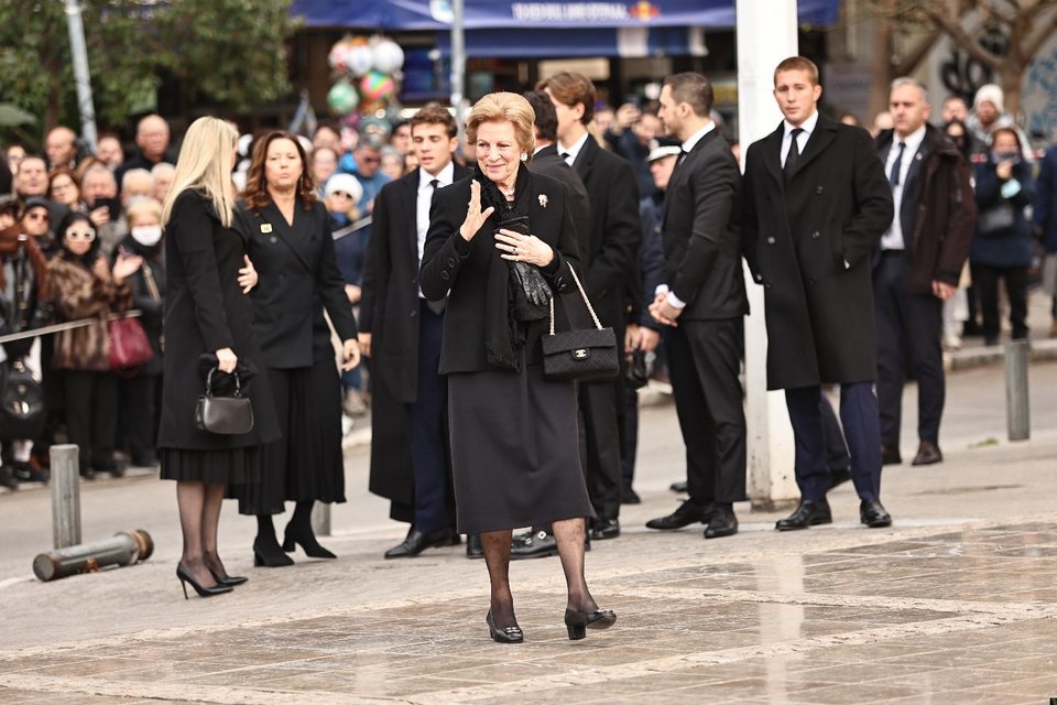 Τελευταία έφτασε η Άννα Μαρία. Η σύζυγος του τέως βασιλιά Κωνσταντίνου έφτασε συνοδευόμενη από τις κόρες της, Αλεξία και Θεοδώρα, τους γαμπρούς της, Κάρλος Μοράλες και Μάθιου Κουμάρ, αλλά και τις νύφες της, Νίνα Φλορ και Χρυσή Βαρδινογιάννη.