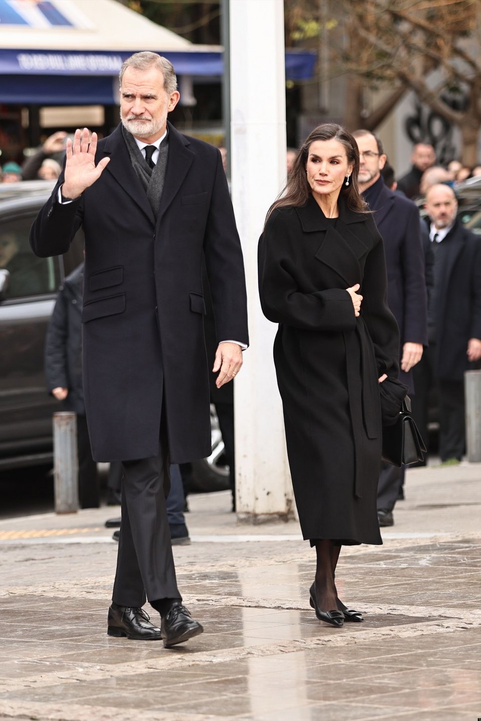 Λίγο πριν από τις 12 το μεσημέρι έφθασαν στη Μητρόπολη ο βασιλιάς της Ισπανίας Φελίπε και η βασίλισσα Λετίθια με τις δύο κόρες τους, πριγκίπισσα Λεονόρ και ινφάντα Σοφία, που βρέθηκαν πρώτη φορά στην Ελλάδα.