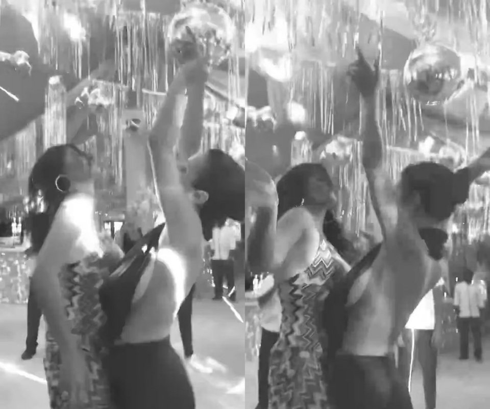 Τόσο αυτή όσο και η Μπιάνκα έδειχναν κυριευμένες από το κέφι καθώς ακτινοβολούσαν και σήκωσαν τα χέρια τους στον αέρα ενώ χόρευαν ξέφρενα.