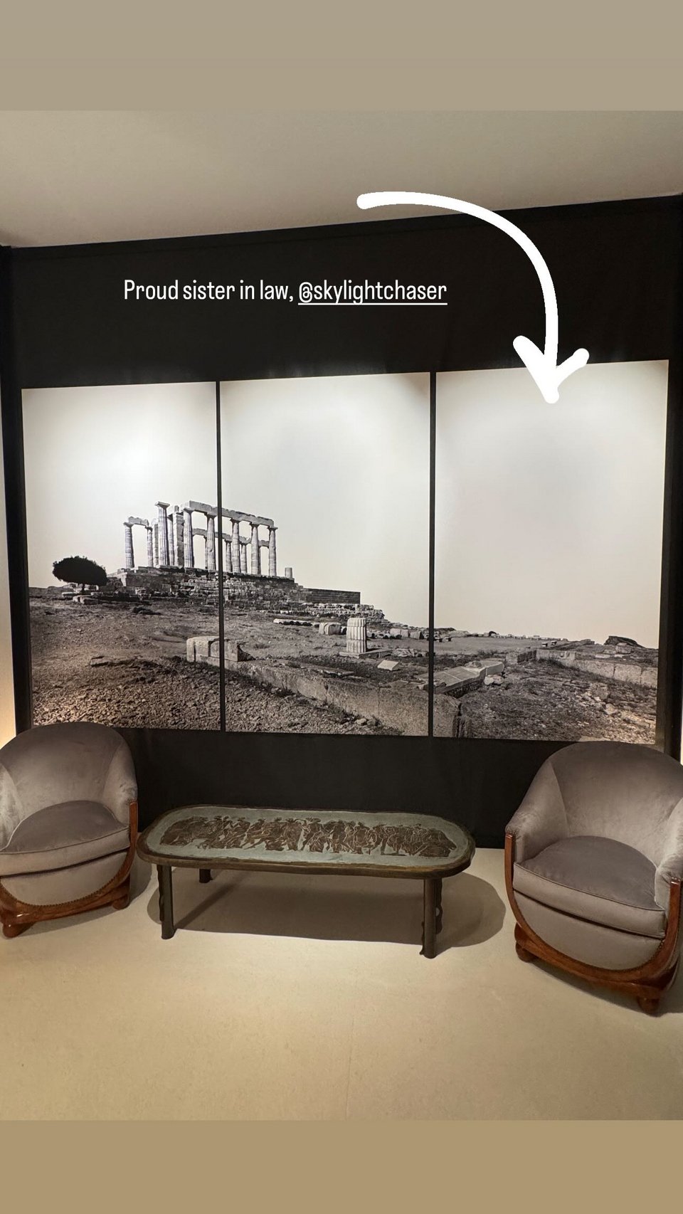 Η Νίνα Φλορ πόσταρε μια σειρά από φωτογραφίες από την έκθεση, με διάφορα έργα και κράτησε για το τέλος τη φωτογραφία του Νικόλαου από το Σούνιο. «Περήφανη κουνιάδα», έγραψε.