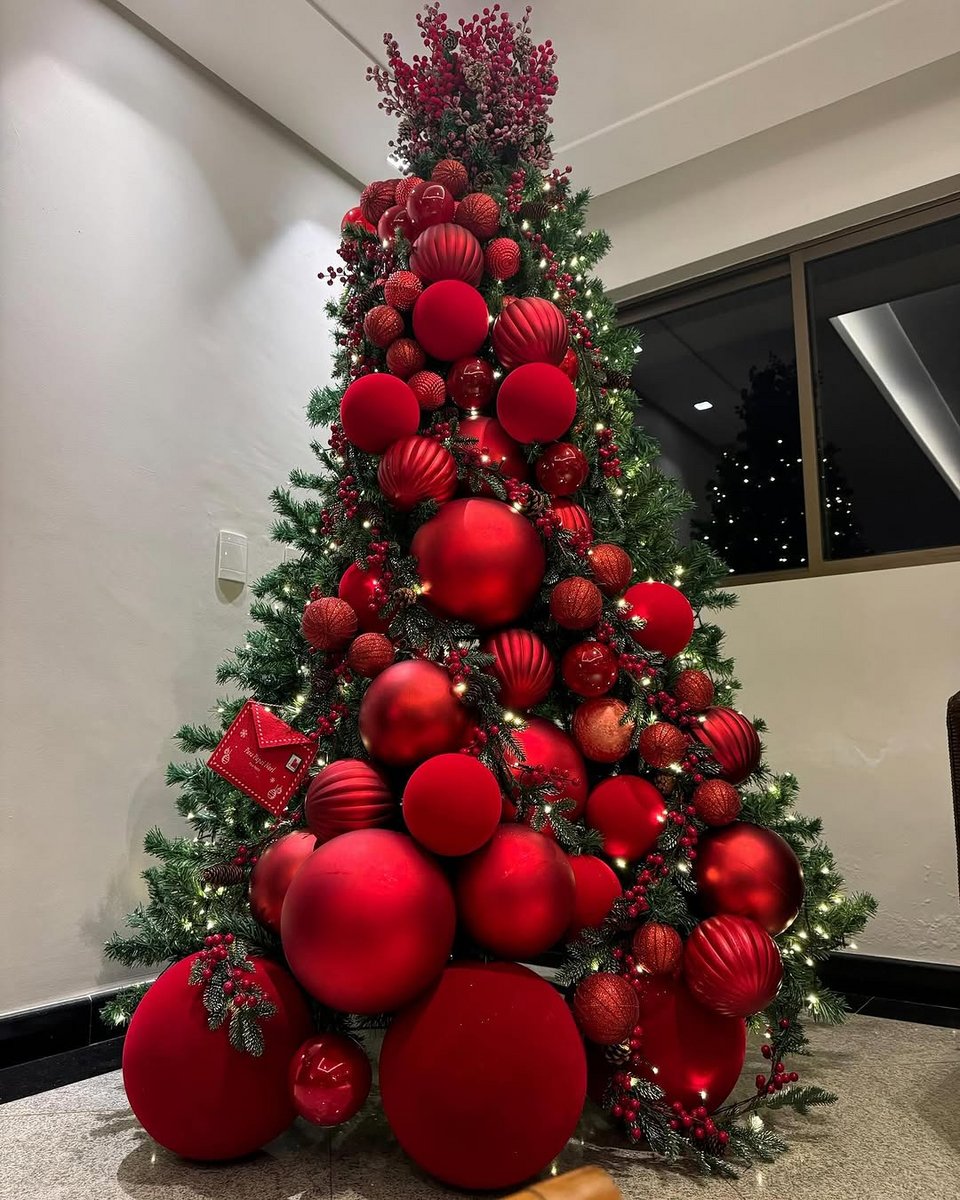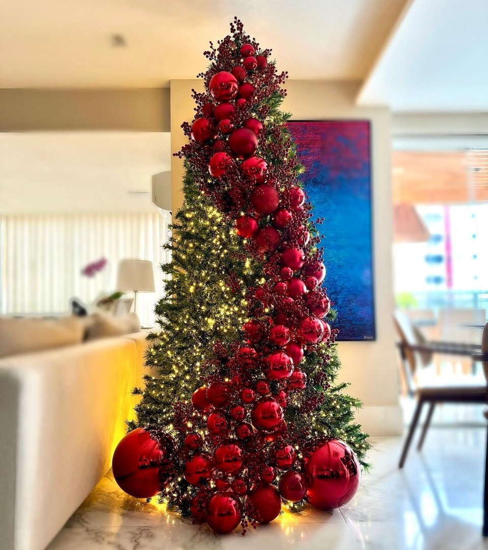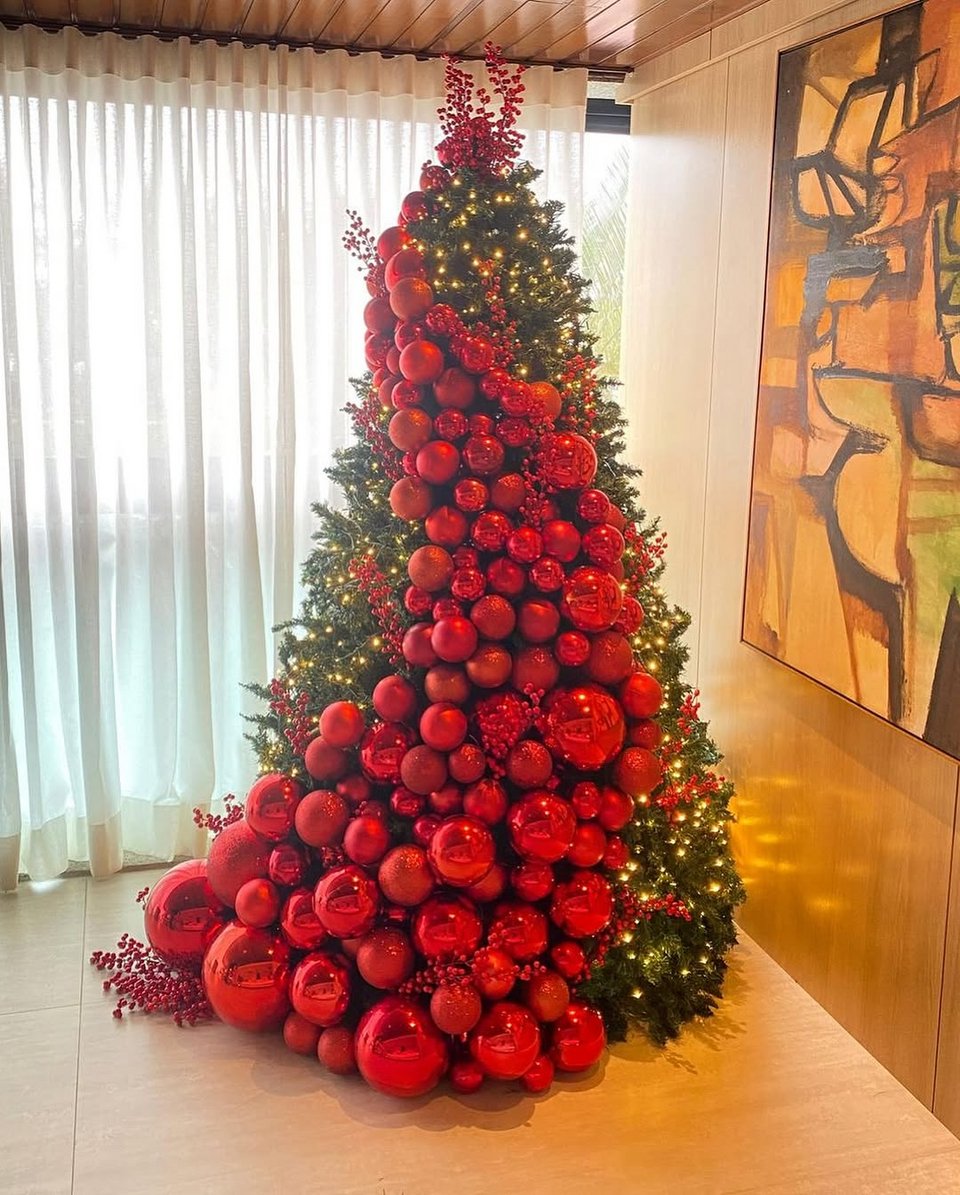Το αποτέλεσμα είναι εντυπωσιακό. Μπορείτε να δημιουργήσετε είτε γιρλάντες από μπάλες διαφορετικού μεγέθους, που είτε τις τυλίγετε γύρω γύρω από το δέντρο είτε από πάνω προς κάτω σαν «ποτάμι ή τσουνάμι».
