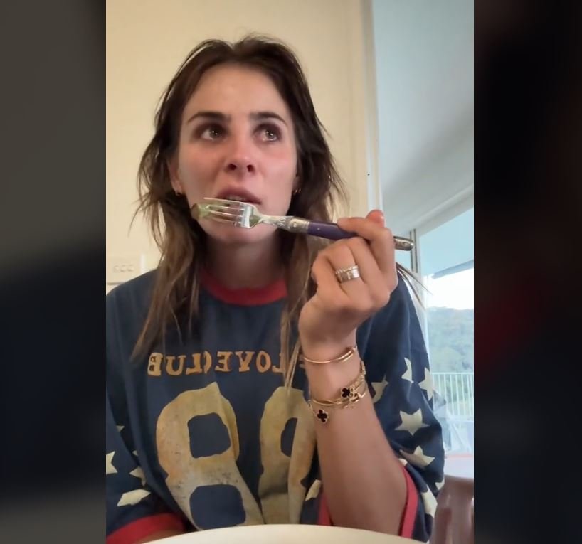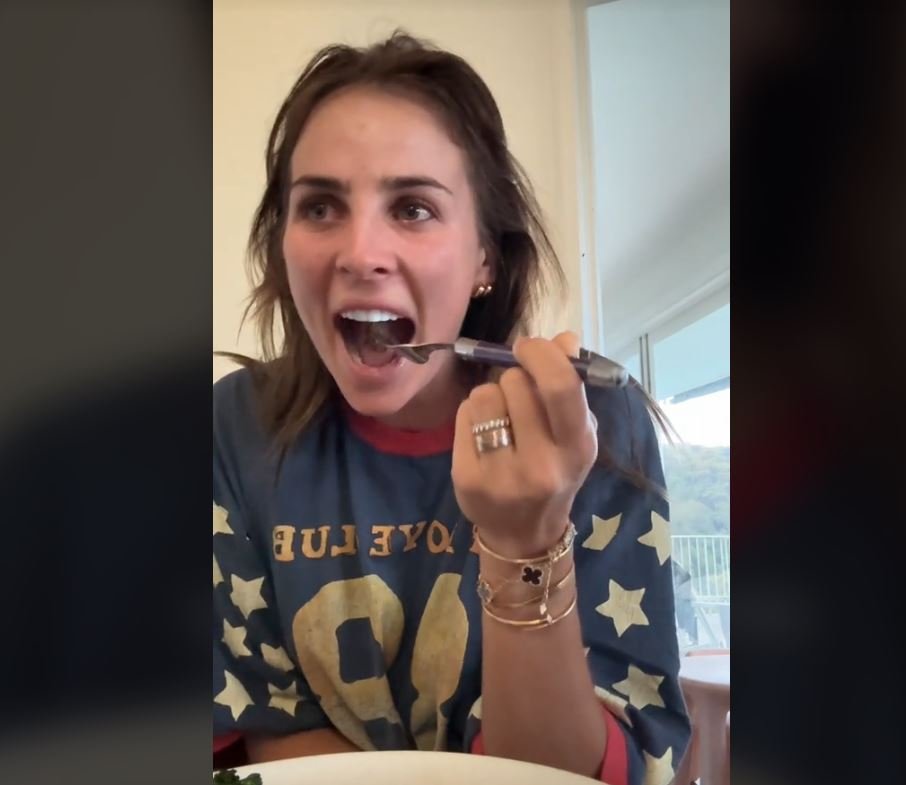 Στο βίντεο, φαίνεται η influencer να κάθεται κρατώντας ένα πιάτο με μια κομμένη σε φέτες μπριζόλα και μια μερίδα μπρόκολο. «Δοκιμάζω κρέας για πρώτη φορά μετά από 12 χρόνια» εξηγεί.
