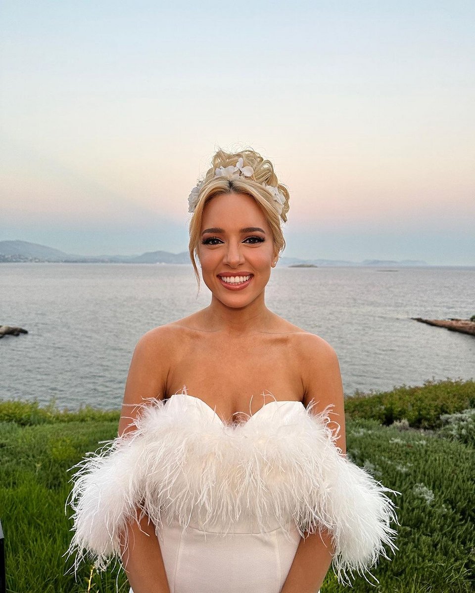 Στις φωτογραφίες και τα βίντεο που ανέβασε η τραγουδίστρια, φαίνεται να απολαμβάνει την κάθε στιγμή, ποζάροντας με το ολόλευκο φόρεμα της.