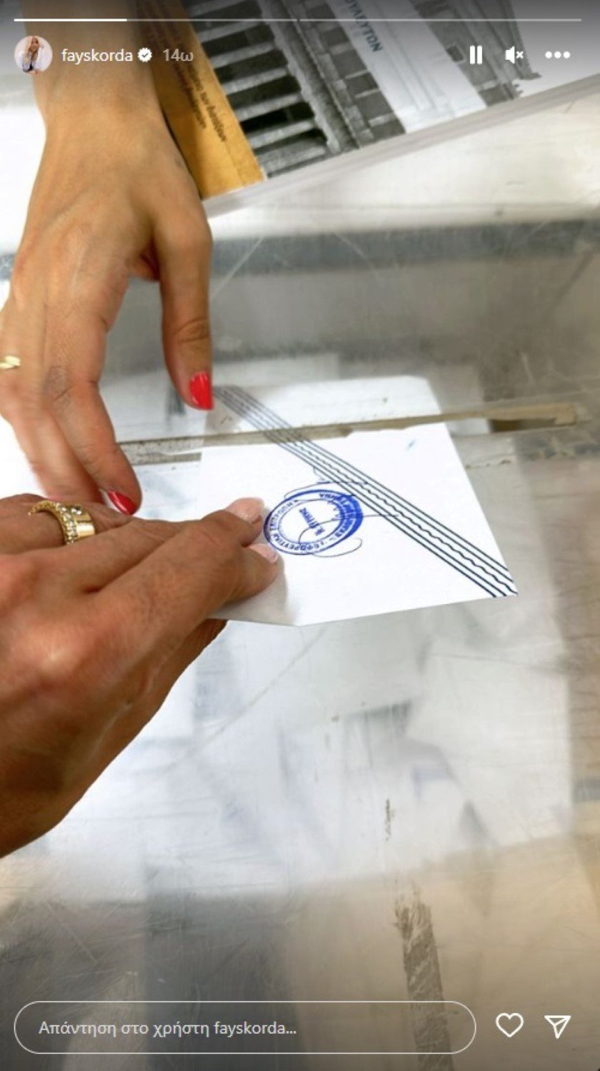 Η Φαίη Σκορδά ταξίδεψε μέχρι τη γενέτειρά της, το Κιλκίς, και μοιράστηκε με τους διαδικτυακούς της φίλους story στο οποίο καταγράφεται η στιγμή που ψηφίζει.