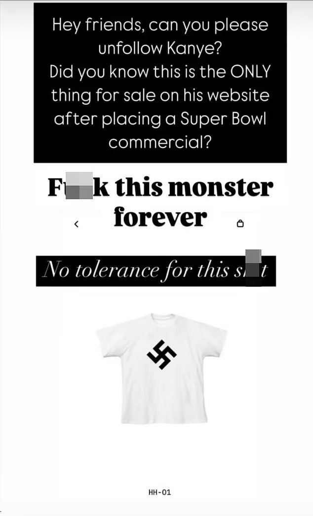 Ο Γουέστ συνέχισε την επίθεσή του στην εβραϊκή κοινότητα την περασμένη εβδομάδα, αποκαλώντας τον εαυτό του Ναζί, δηλώνοντας ότι «αγαπά τον Χίτλερ» και επιμένοντας ότι δεν θα ξαναεμπιστευτεί ούτε θα συνεργαστεί ποτέ ξανά με Εβραίους.
