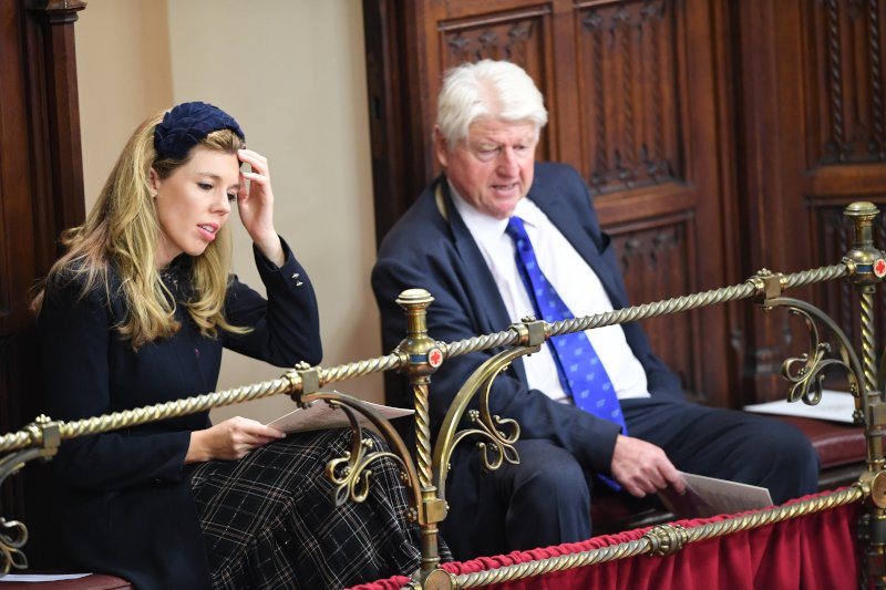 Η φιλόδοξη Κάρι, που βοήθησε στην αλλαγή της εικόνας του Μπόρις Τζόνσον και στην εκλογή του στην θέση του πρωθυπουργού, πήρε την θέση της στα έδρανα των Λόρδων, μαζί με τον πατέρα του Τζόνσον και δεν μπορούσε να κρύψει την αμηχανία της.