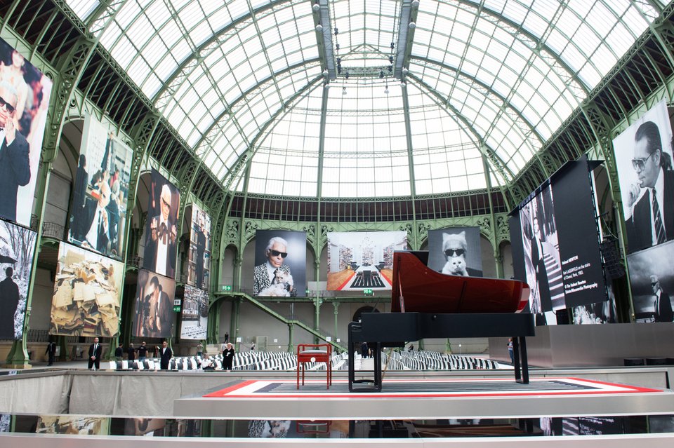 Η εκδήλωση σχεδιάστηκαι σκηνοθετήθηκε από τον Robert Carsen και φυσικά πραγματοποιήθηκε στο λατρεμένο Παρίσι του Karl Lagerfeld και στον αδιαμφισβήτητα πιο αγαπημένο του χώρο: Το το χώρο όπου διοργάνωνε τα μεγάλα σόου υπερπαραγωγή της Chanel και τα οποία έγραψαν και άλλαξαν την ιστορία της μόδας.