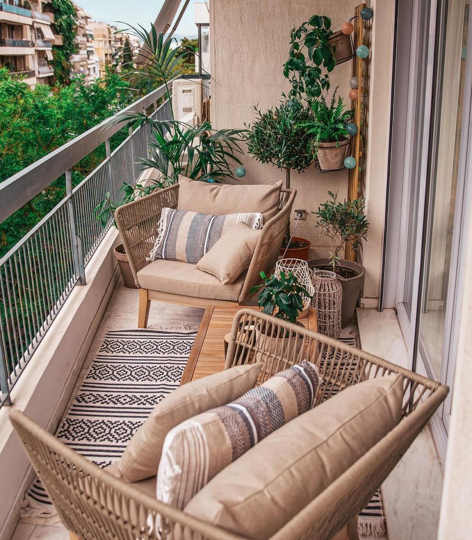 Υπέροχες γήινες αποχρώσεις στα έπιπλα κήπου, φυτά να κοσμούν τις γωνιές και κεριά κοσμούν το μπαλκόνι της Κατερίνας Καινούργιου, και το πιο ωραίο σε αυτές τις φωτογραφίες είναι οι πολυθρόνες στις οποίες η παρουσιάστρια χαλαρώνει και απολαμβάνει τον καφέ της ή το ποτό της όλες τις ώρες της ημέρας.