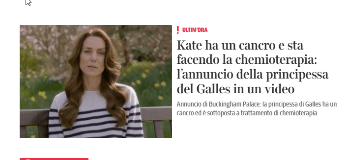 Η Corriere de la Serra έχει επίσης πρώτο θέμα στην ιστοσελίδα της την ανακοίνωση της Μίντλετον.