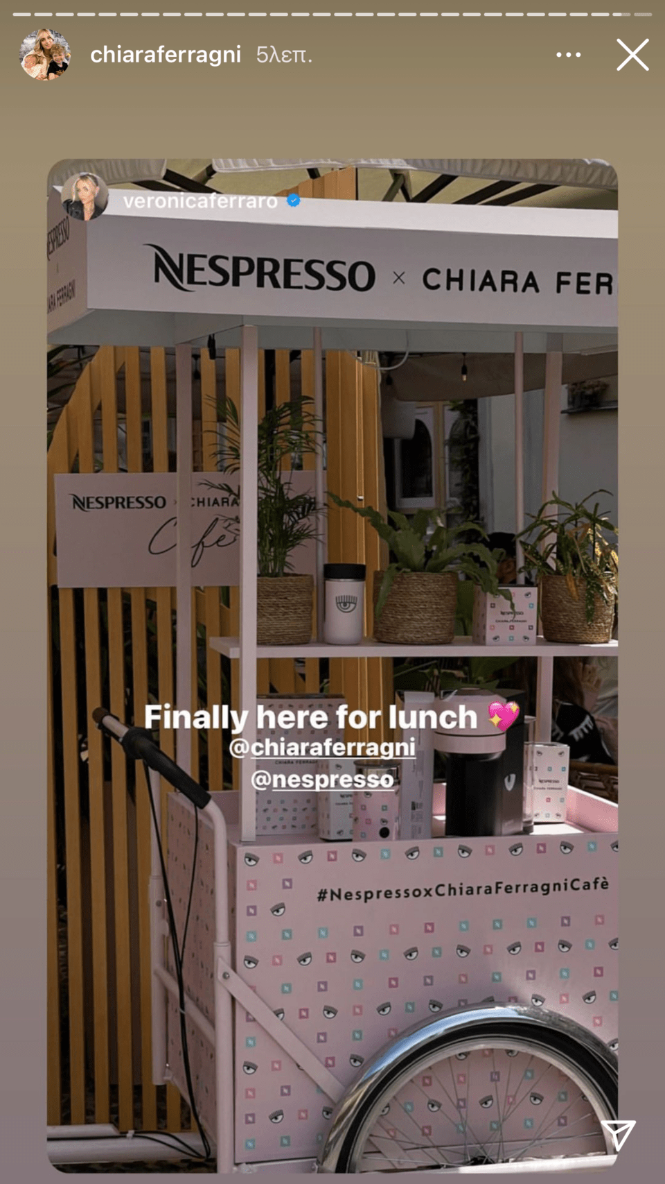 Οπως διαπιστώσαμε από τις φωτογραφίες που ανεβάζει στον λογαριασμό της στο Instagram, ο λόγος που η Ιταλίδα style icon ταξίδεψε στην ελληνική πρωτεύουσα είναι το event της Nespresso, με την οποία η Κιάρα Φεράνι διατηρεί συνεργασία. Ειδικότερα, η Κιάρα Φεράνι έχει μεταμορφώσει μερικά από τα πιο αγαπημένα αξεσουάρ Nespresso με το εμβληματικό στιλ της, χρησιμοποιώντας τολμηρά χρώματα και ζωηρά σχέδια.