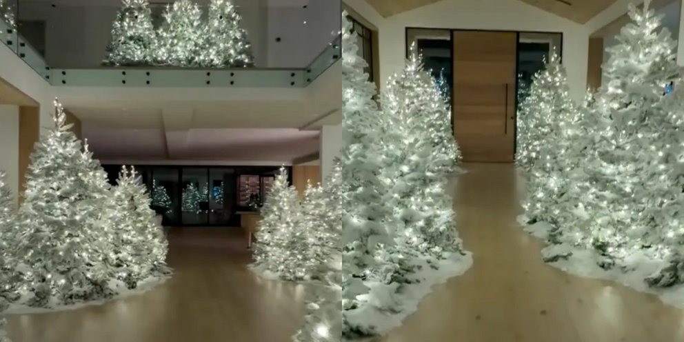 Στα βίντεο που μοιράστηκε, ο διάδρομος του σπιτιού της ήταν γεμάτος με δεκάδες φωτισμένα χριστουγεννιάτικα δέντρα καλυμμένα με τεχνητό χιόνι.