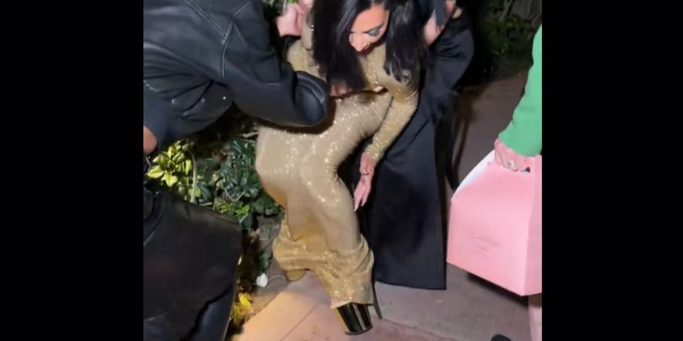 Τα πανύψηλα πέδιλα και το θεόστενο φόρεμα όμως δυσκόλεψαν την Κιμ Καρντάσιαν. Η ίδια μοιράστηκε στο λογαριασμό της στο TikTok ένα βίντεο από τη στιγμή που κατευθυνόταν προς το αυτοκίνητό της για να πάει στη λαμπερή εκδήλωση.