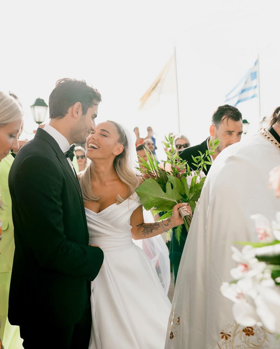 To ζευγάρι ανέβηκε τα σκαλιά της εκκλησίας το απόγευμα του Σαββάτου 9 Ιουλίου στα Φαλάσαρνα των Χανίων. Οι δύο τους πραγματοποίησαν τον θρησκευτικό τους γάμο στην εκκλησία του Άγιου Εφραίμ, ενώ στη συνέχεια ακολούθησε ένας δεύτερος σε αμερικανικό στιλ ακριβώς πάνω στην παραλία.