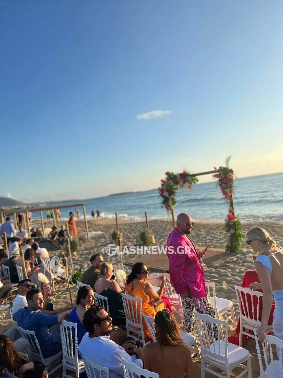 Η δεξίωση πραγματοποιήθηκε στο Λιοκάλυβο στην παραλία των Φαλασάρνων όπου μεταξύ άλλων τραγούδησε και ο πατέρας της νύφης, Λευτέρης Πανταζής.