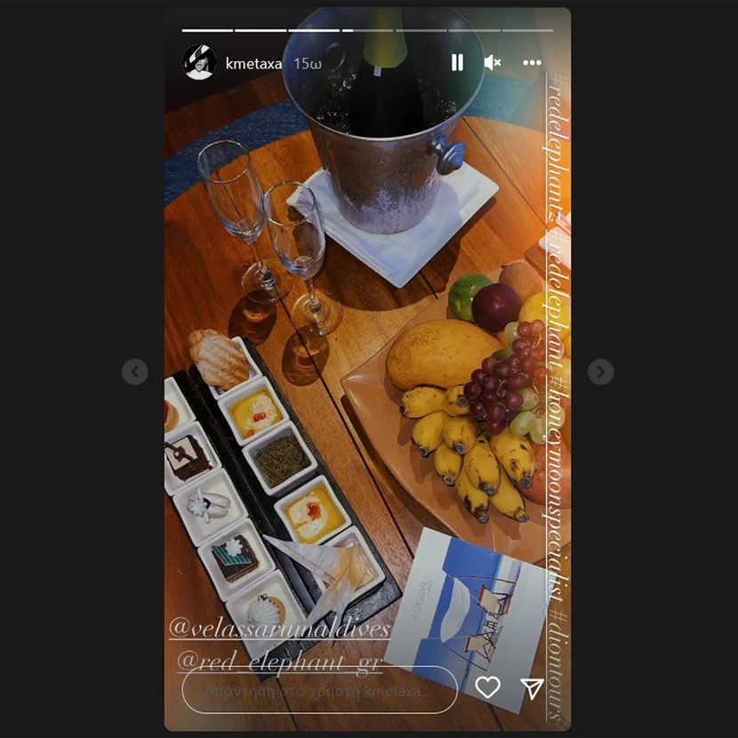Η Κόνι Μεταξά και ο Μάριος Καπότσης επέλεξαν ένα θέρετρο στον Ινδικό Ωκεανό και, όπως φαίνεται από τις φωτογραφίες, απόλαυσαν το φαγητό τους, σαμπάνια, τροπικά φρούτα και γλυκά.
