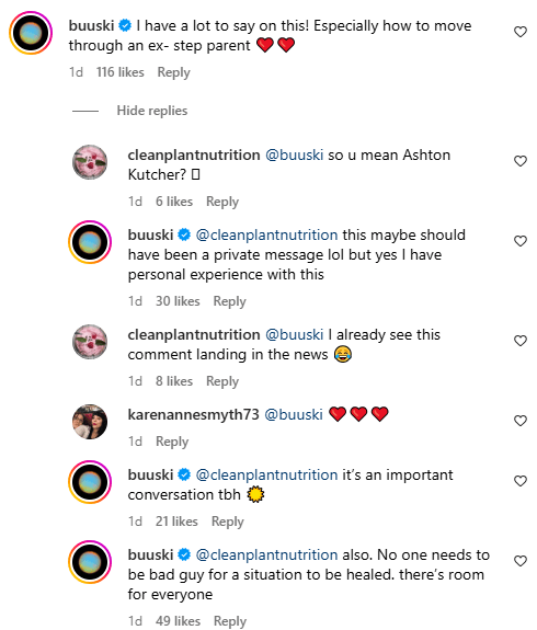 Ένας χρήστης του Instagram τη ρώτησε αμέσως αν αναφερόταν στον Άστον Κούτσερ, ο οποίος ήταν παντρεμένος με τη Ντέμι Μουρ από το 2005 έως το 2013.