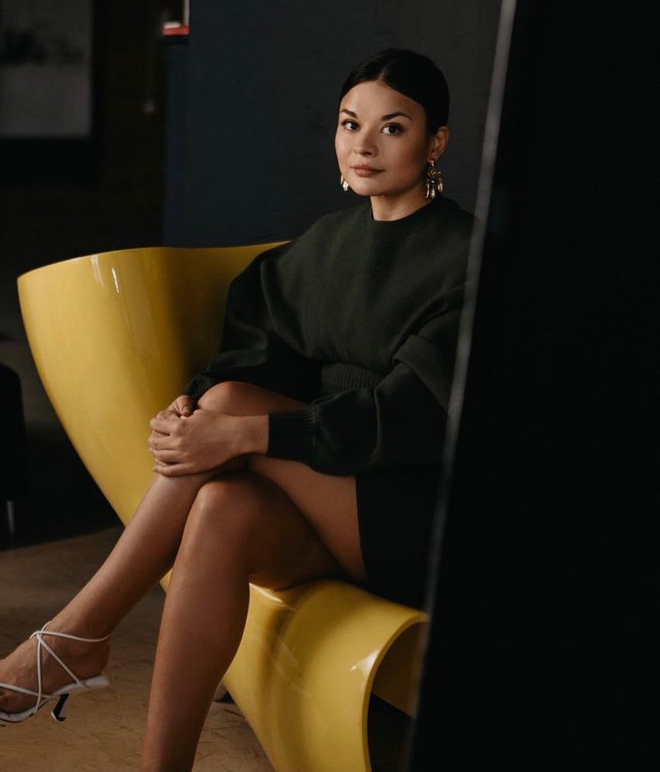 Μπορεί ο πατέρας της να είναι ένας από τους πιο κοντινούς ανθρώπους στον Πούτιν -ο Ρώσος υπουργός Άμυνας Σεργκέι Σοϊγκού-, η ίδια ωστόσο ποζάρει με τα χρώματα της ουκρανικής σημαίας.