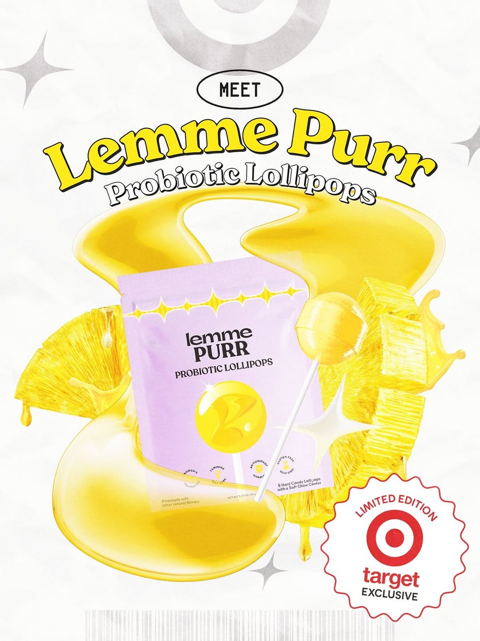 Κάτω από την προκλητική φωτογραφία, η Κόρτνεϊ έγραψε στη λεζάντα: «Η επόμενη επίσκεψή σας στο @Target μόλις έγινε πολύ πιο… γλυκιά. Σας παρουσιάζω τα Lemme Purr Probiotic Lollipops».
